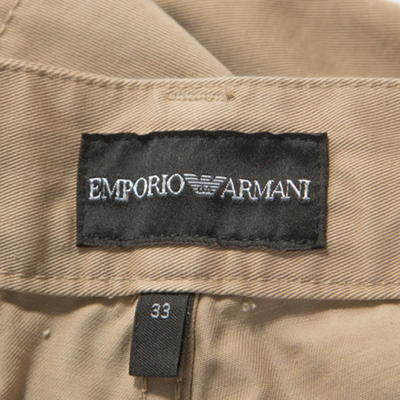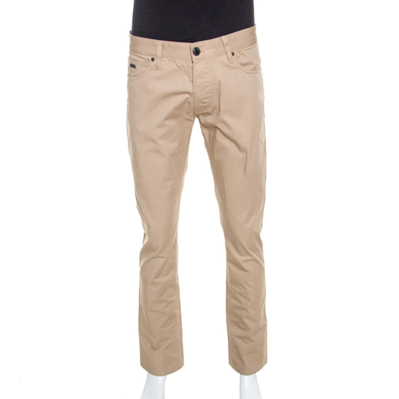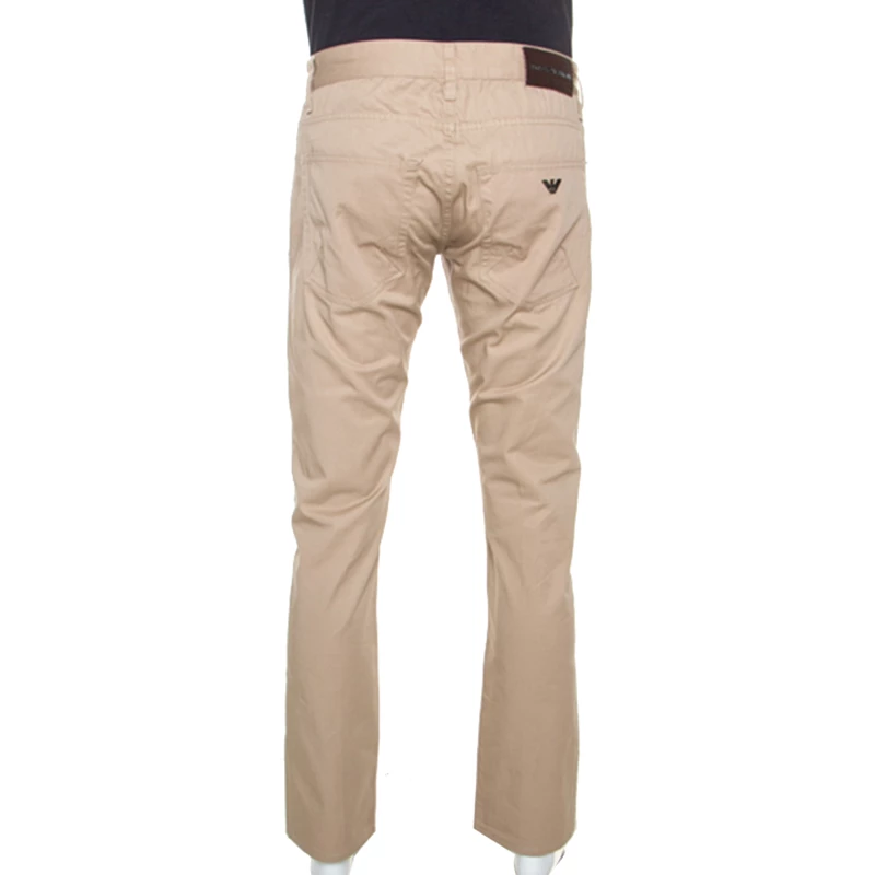 These classic trousers by Emporio Armani are a wardrobe staple. Crafted from 100% cotton, they are designed to be comfortable and offer effortless style. They feature five external pockets and a regular fit. These beige trousers can be paired with a host of shirts and are very stylish.