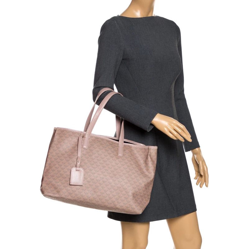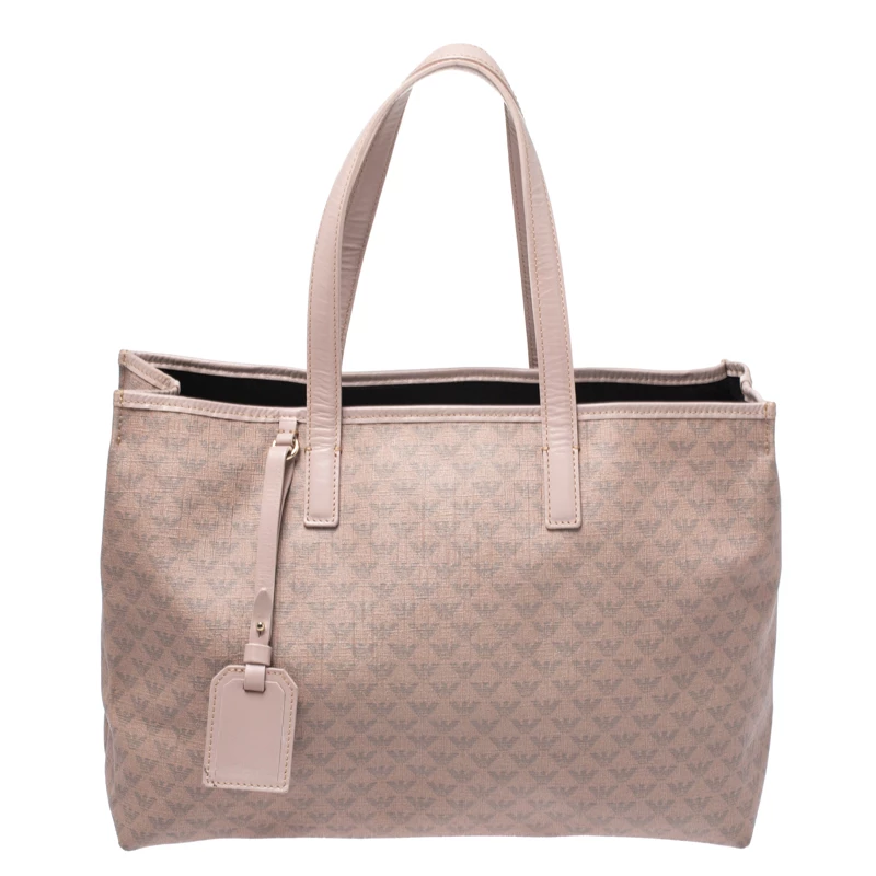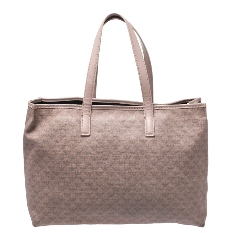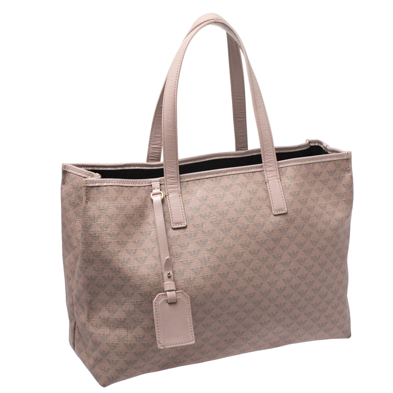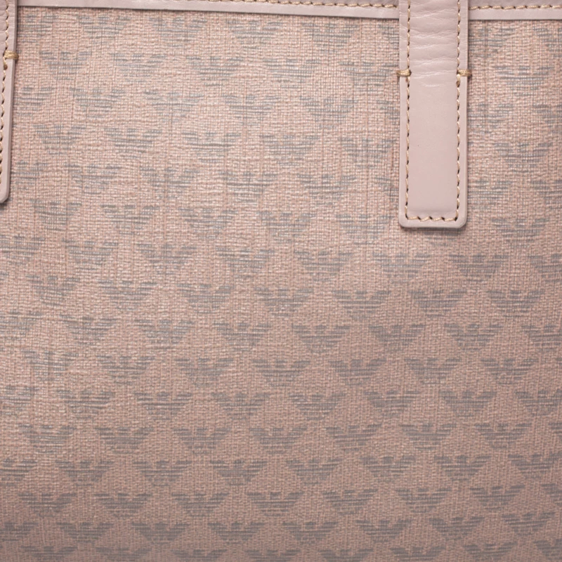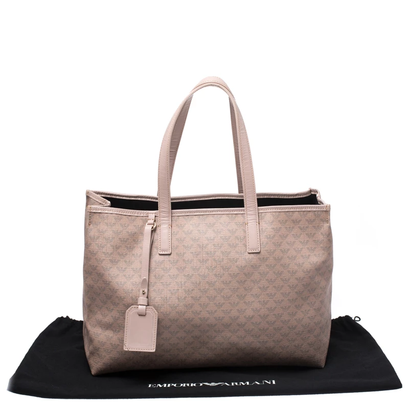 This Emporio Armani bag is an example of the brand’s fine designs. Crafted from the brand’s signature monogram canvas, it comes in a lovely shade of beige. It is styled to deliver style and functionality and comes with dual handles. This tote bag has a tag, canvas interior with enough space for all your essentials. The bag is finished with gold-tone hardware.