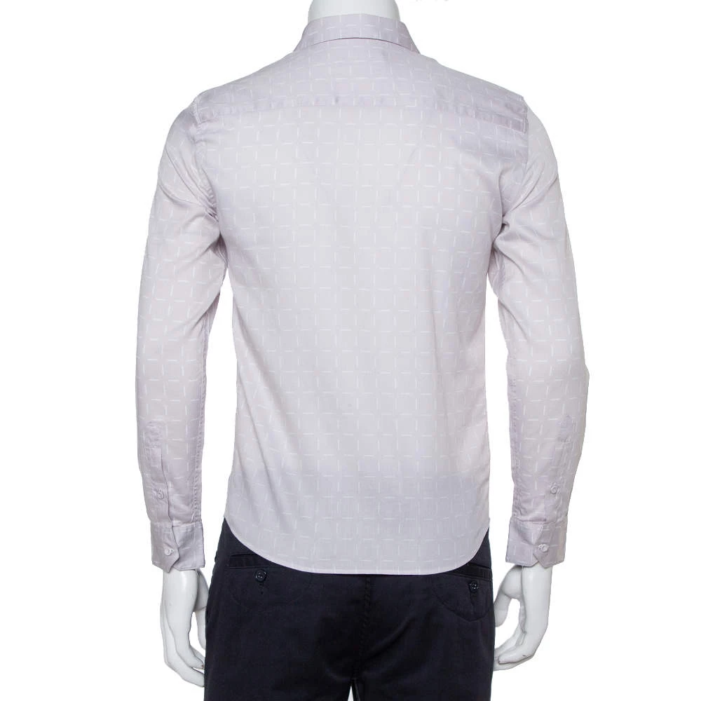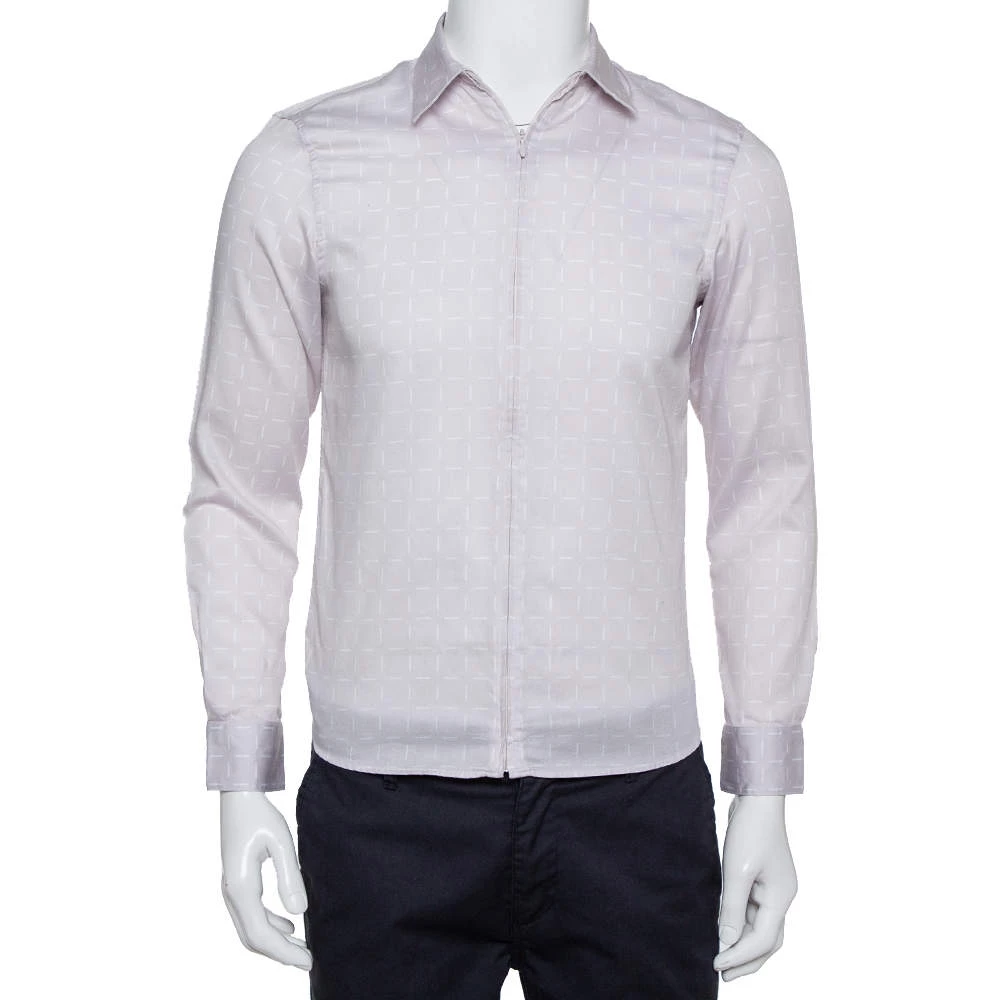 Covered in prints, this Emporio Armani beige shirt for men is a creation that offers both style and comfort. It is tailored using cotton and secured with a zipper at the front.