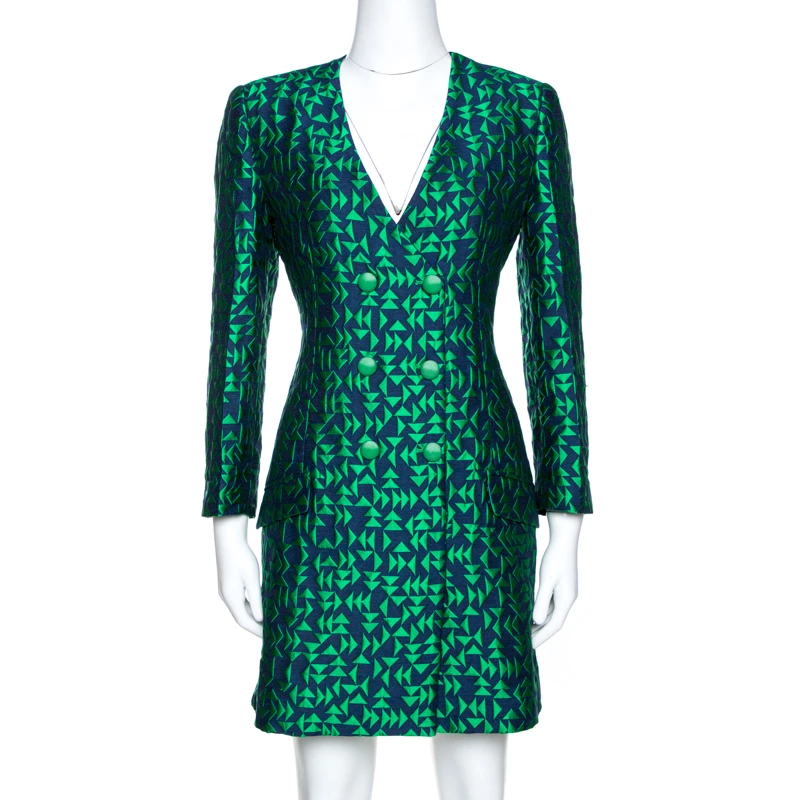 Pick this Emporio Armani shift dress if you are looking for an expensive and elegant look. Made of quality fabrics, this dress has a jacquard finish all over and front button details. This long-sleeved dress is a fine example of sophistication blended with charm.