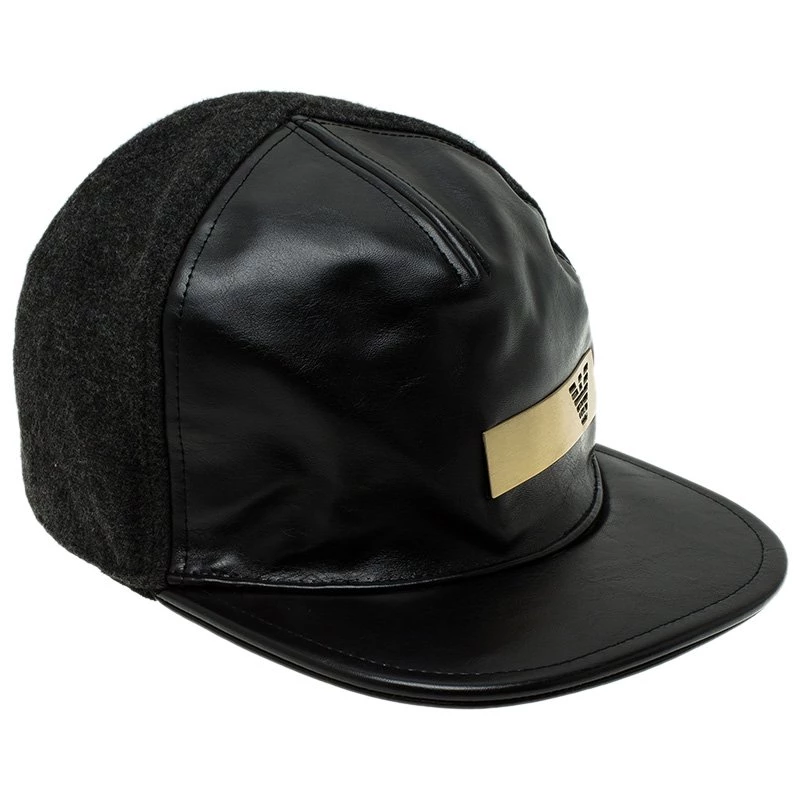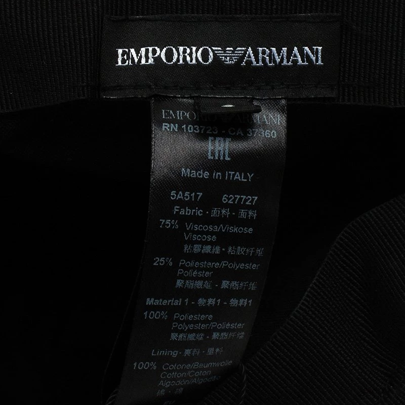 This Emporio Armani baseball cap ensures a dashing outdoor look. The cap features grey back panels, black front panels, and a gold-tone stripe with Emporio Armani logo.