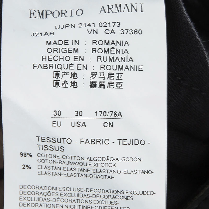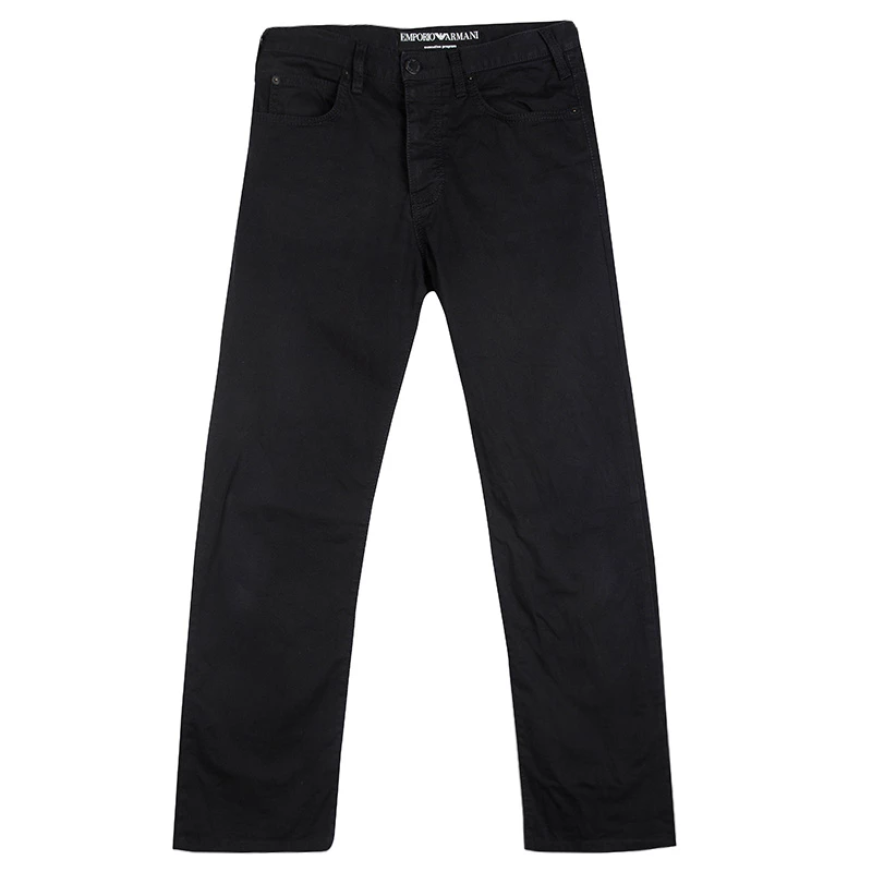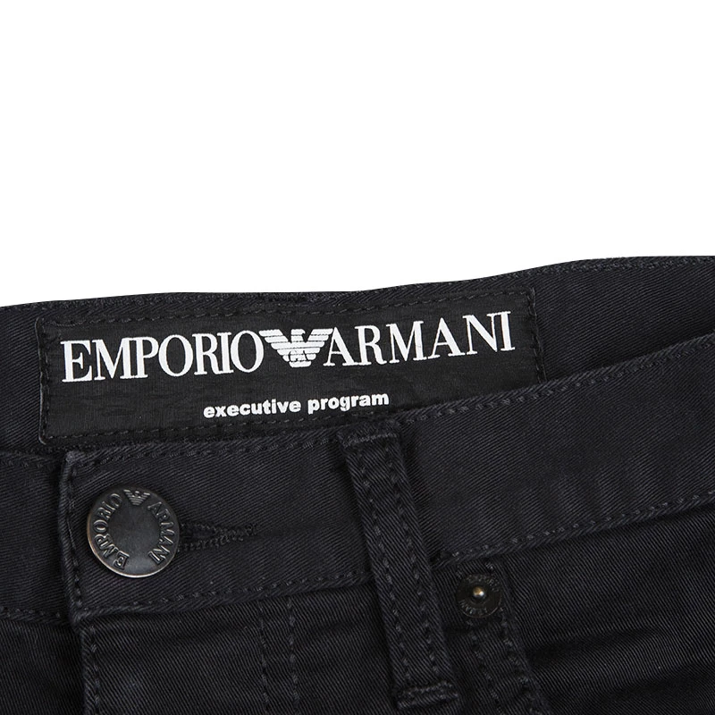 Your basic everyday denims are made special and luxurious by Emporio Armani, loved by fashionable men all over. Constructed in black cotton blended fabric, this Sean denim features a basic fit with a waist band, belt loops and a black leather patch at the back embossed with the brand name and completed with a metal logo on the back pocket.