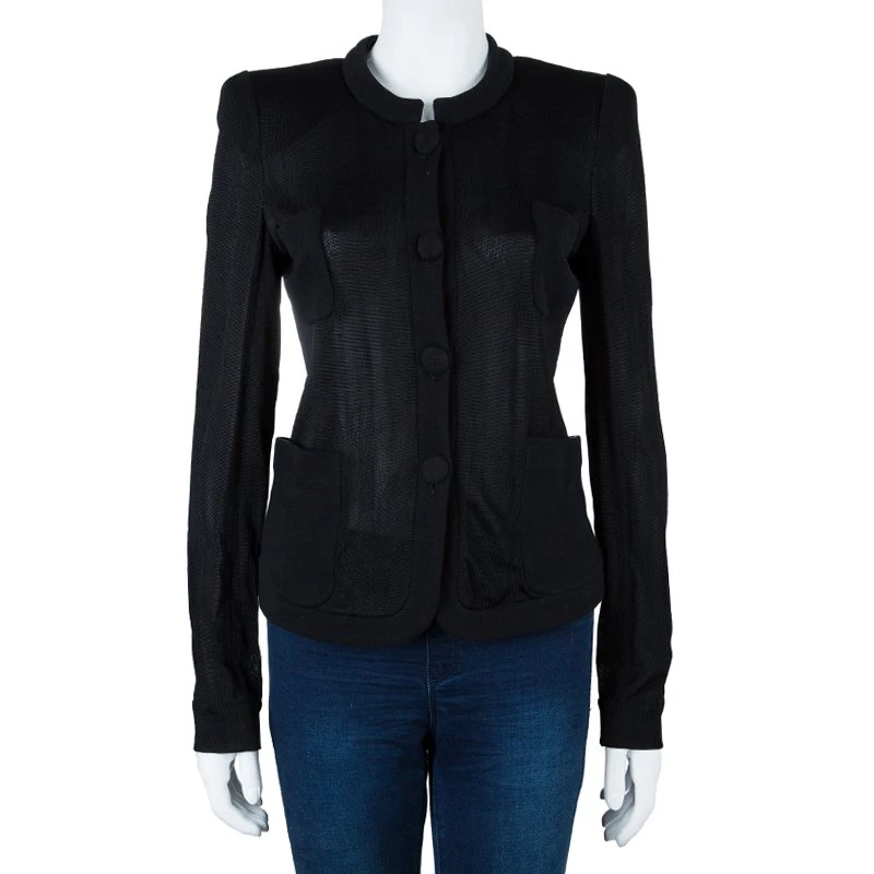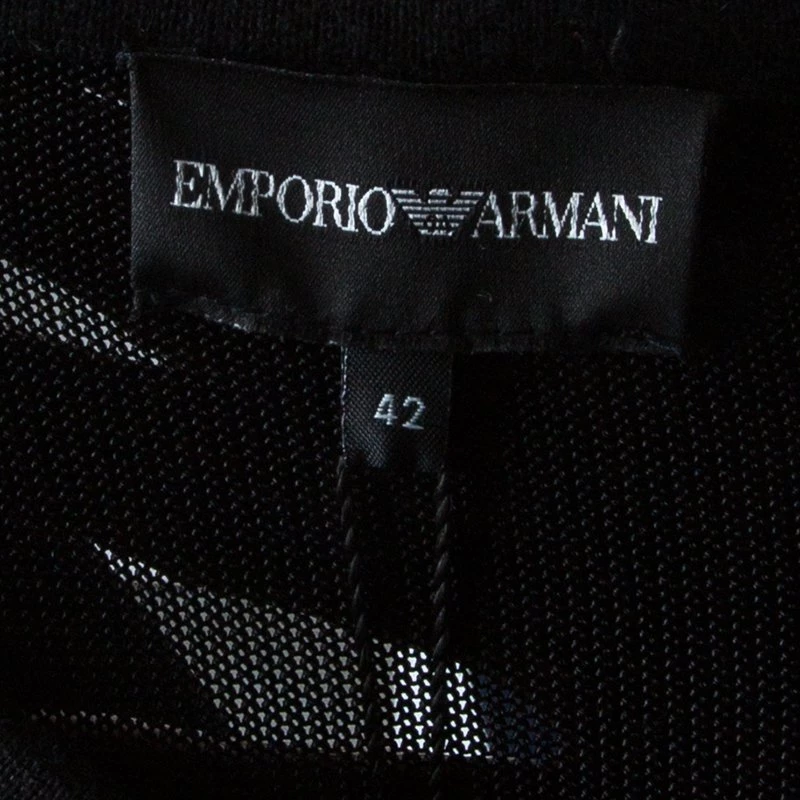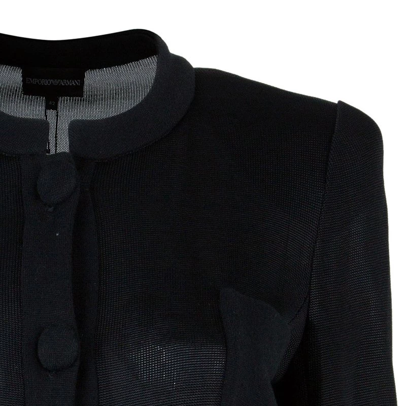 This smart Emporio Armani Black Cardigan comes crafted in viscose and cotton blend. It comes with ribbed edges and front button closure. The front patch pockets add a stylish look.