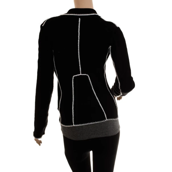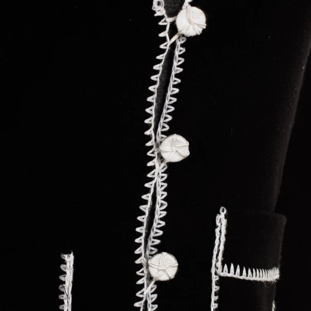 This cute Emporio Armani Black Cardigan with White Trim comes with two front patch pockets. Made entirely of wool it has three embellished buttons and a v-neck. This cardigan is embellished with white trim on its exterior.Original Retail Price:US $248