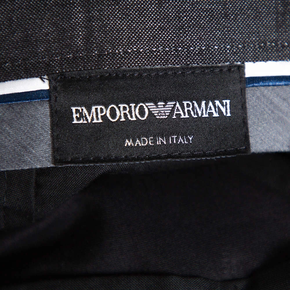 Rejuvenate your closet with these fabulously-stitched trousers by Emporio Armani. Stylish and elegant, this black pair will help you get through your formal events with comfort and ease. Tailored from a blend of cotton and cashmere, these casual trousers would surely be a significant addition to your wardrobe collection.