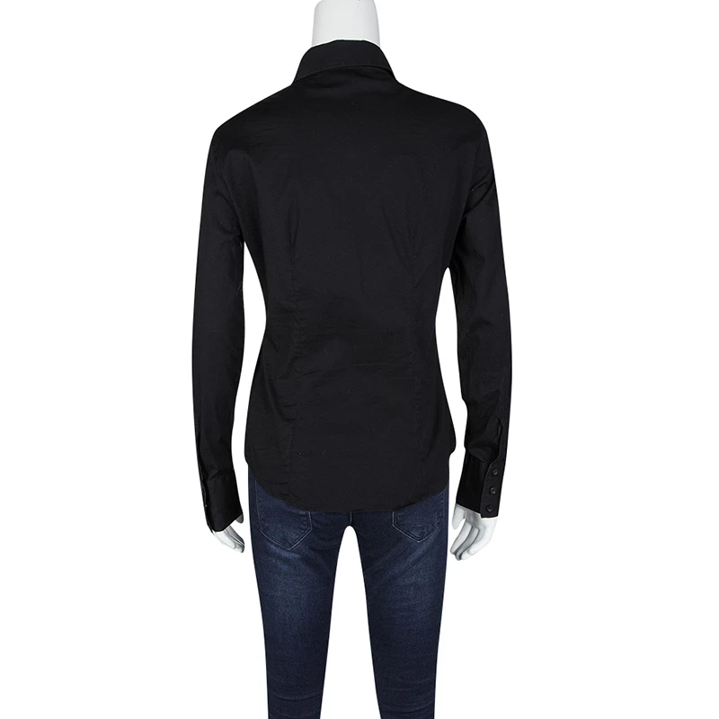 Extremely well-tailored to blend in with your impeccable style, this Emporio Armani shirt is a great buy! It has been made from cotton and styled with a collar, front buttons, and long sleeves. It is ideal to be worn with trousers or skirts.