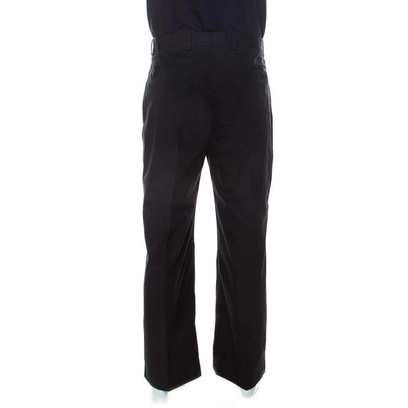 These formal trousers from Emporio Armani have a classic appeal. They are crafted from black cotton which makes them breathable and comfortable for work. Cut to offer a regular fit, they feature belt loops and a zip closure. Pait with a light-colored shirt for a classic look.