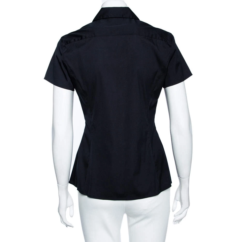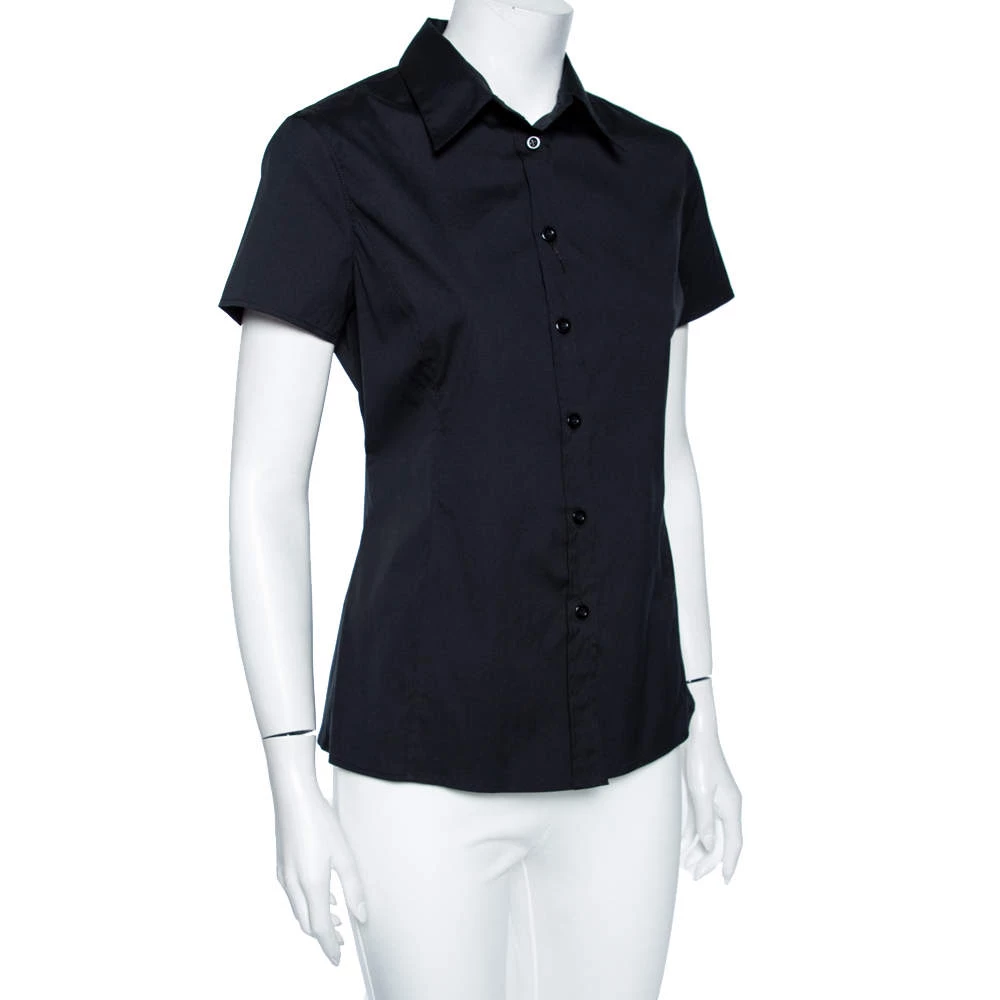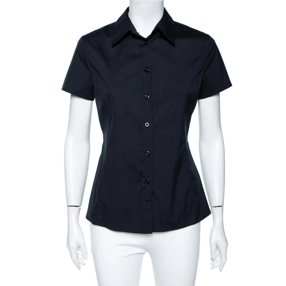 This Emporio Armani shirt has been crafted in black cotton and is the ideal pick for work. The shirt comes with a crisp collar and full front button closure. Pair this time-honored shirt with your favorite trousers or skirts and step out in style.