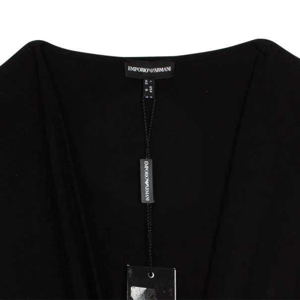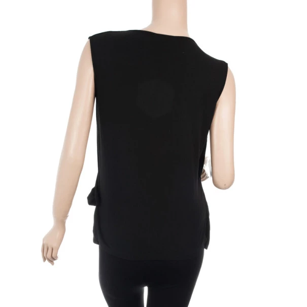 This elegant layered sleeveless top by Emporio Armani will be your new favorite top. Pair it with jeans for a casual look or with a printed leggings and heels for a night out! It features a crossover front drape and a sheer side insert.Original Retail Price: US $206