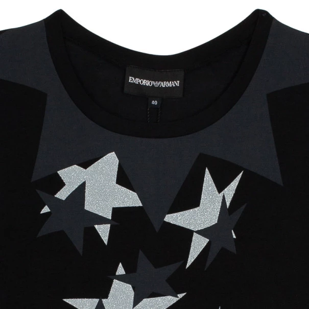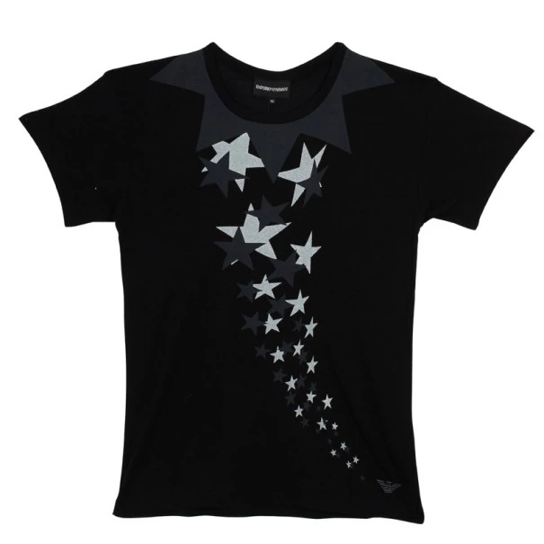 A casual tshirt by Emporio Armani that can amp up your look. From the Fall/Winter 2010 collection, this tshirt comes with short sleeves, stars embellishments and a round neck. Original Retail Price: US $123