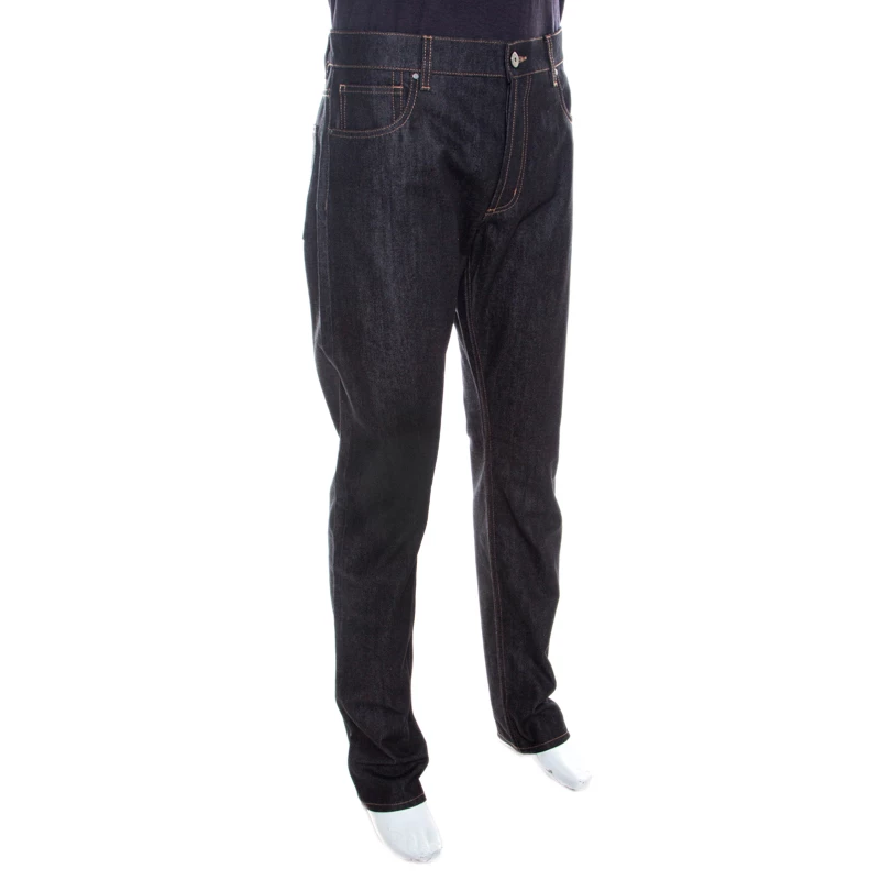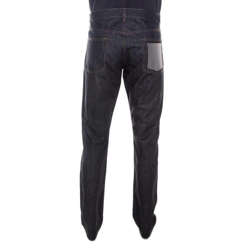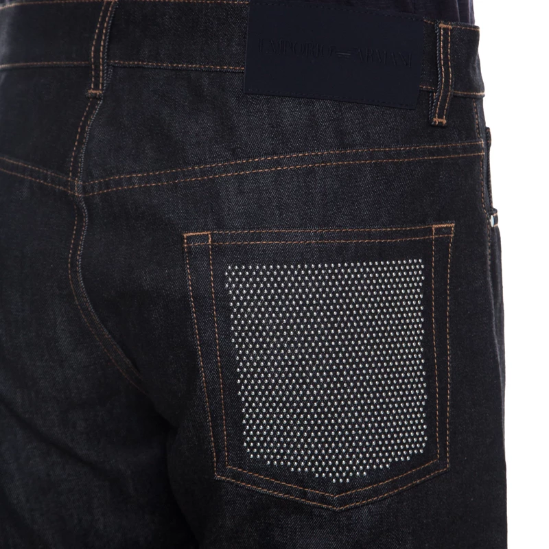 This black dark wash denim is totally reliable when it comes to matching different colors with bottoms. These tapered jeans come with five external pockets out of which, one back pocket features studded detail. Tailored from cotton it will be your best buy.