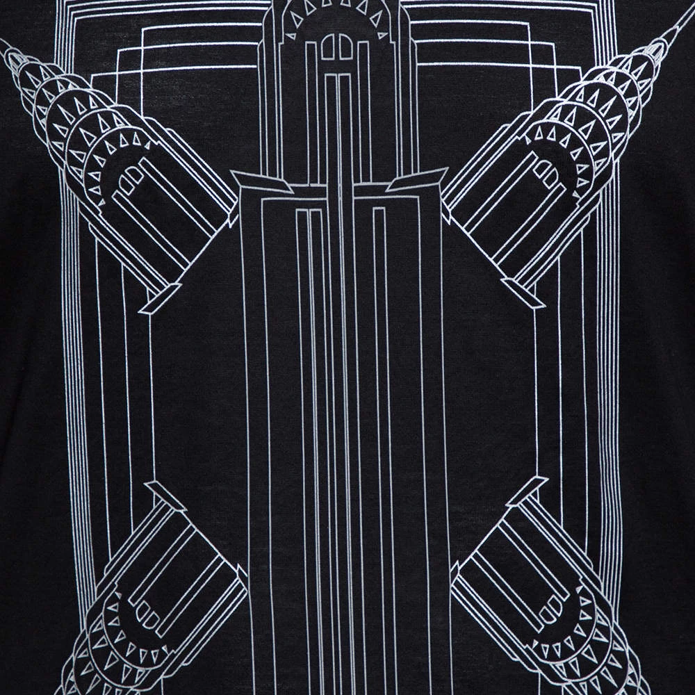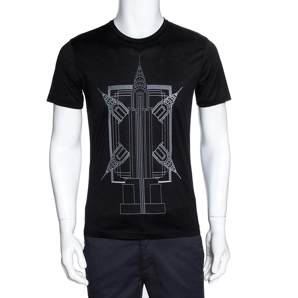 This lovely t-shirt by the iconic house of Emporio Armani is great for casual days. Crafted from quality cotton, it has a stylish black hue and carries a playful ‘Empire State Building’ print in the front. It has a round neck, short sleeves, and a good fit.