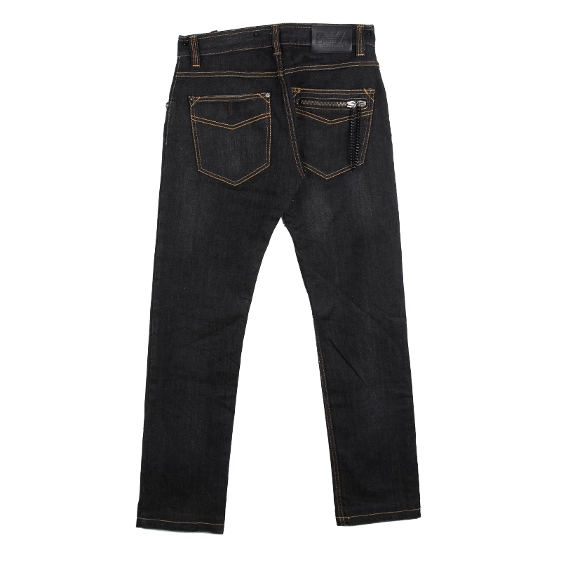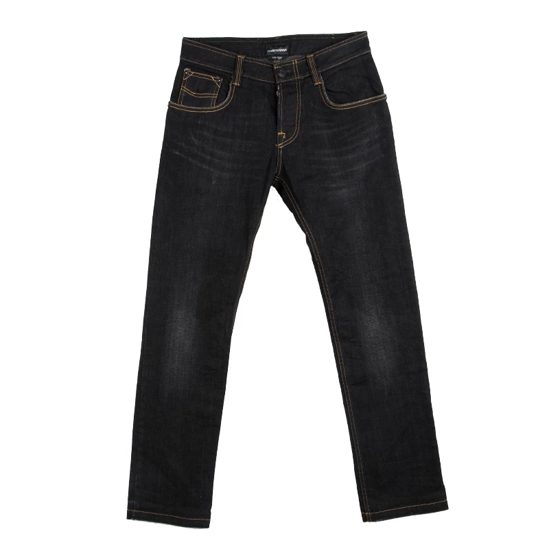 Emporio Armani brings you this pair of Jude jeans that has been crafted from cotton in a black shade with a faded style. It has front and back pockets and a stylish double zip with a chain on one of the rear pockets. Team it up with a white Polo T-shirt and Tobias loafers for a smart look.