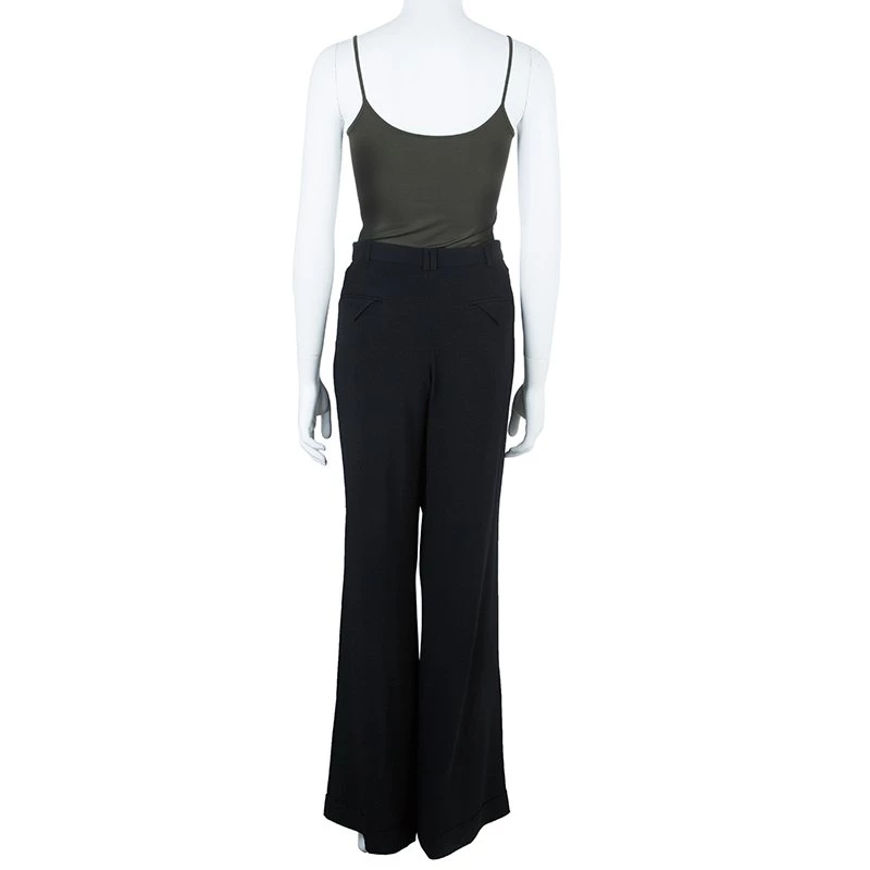 These classic wide leg trousers by Emporio Armani are crafted with polyester-viscose blend, making them soft and comfortable to wear. Stylish and easy to carry, they are good for daywear at work or for an evening out with friends.