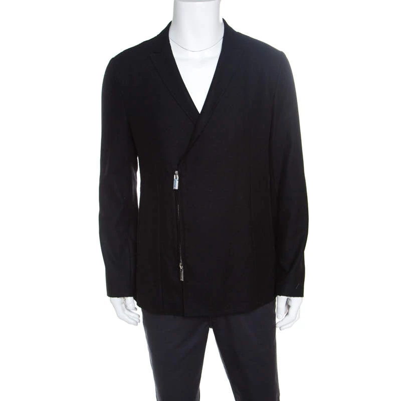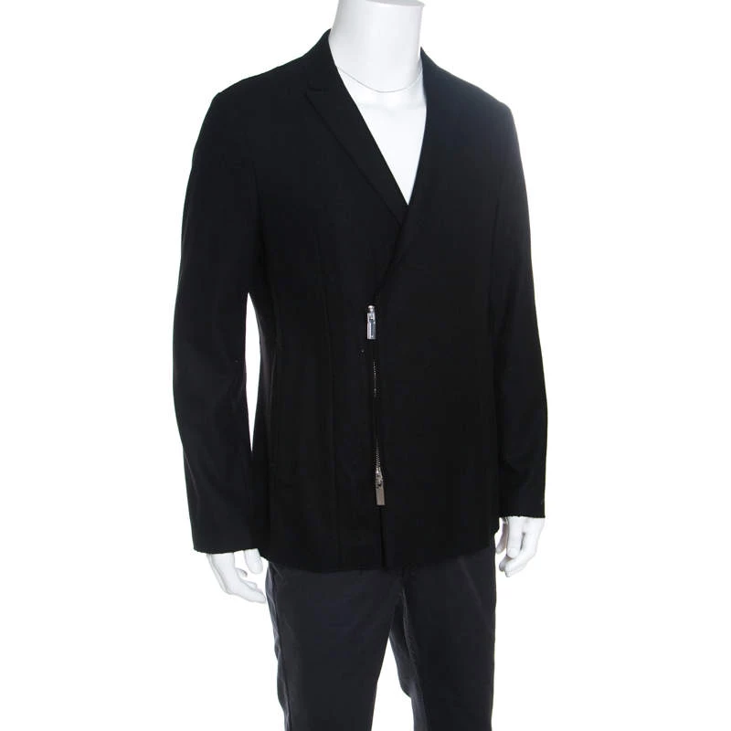 For days when it is chilly, Emporio Armani brings you this lovely jacket. Black in shade, the jacket has been made from a wool blend and styled with a front zipper, notched lapels and frayed trims.
