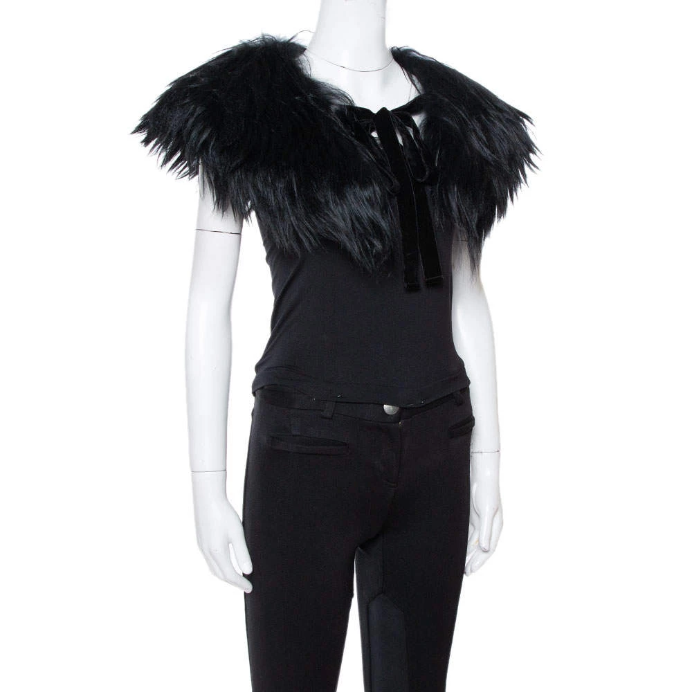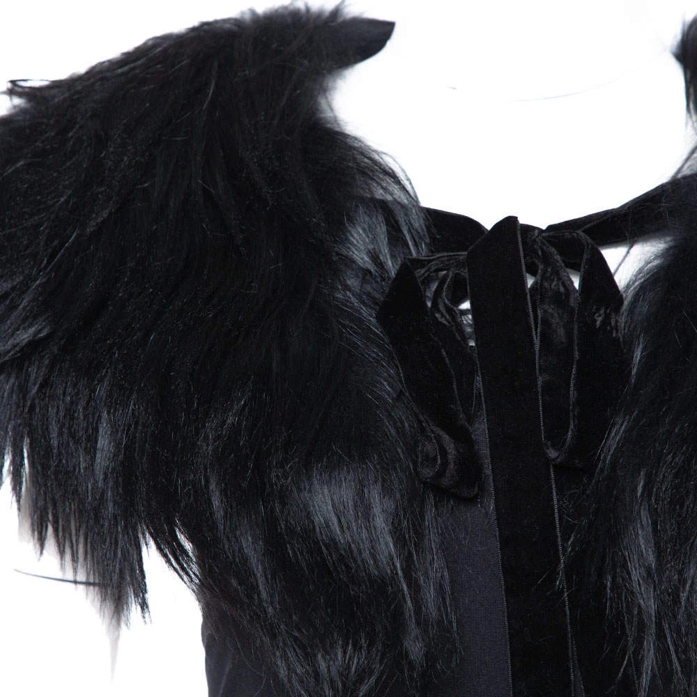 Be it a dress or a simple blouse, add a dramatic touch to any outfit by accessorizing with this gorgeous fur collar. Designed by Emporio Armani, this piece is designed from a black goat fur and secured with tie-up straps.