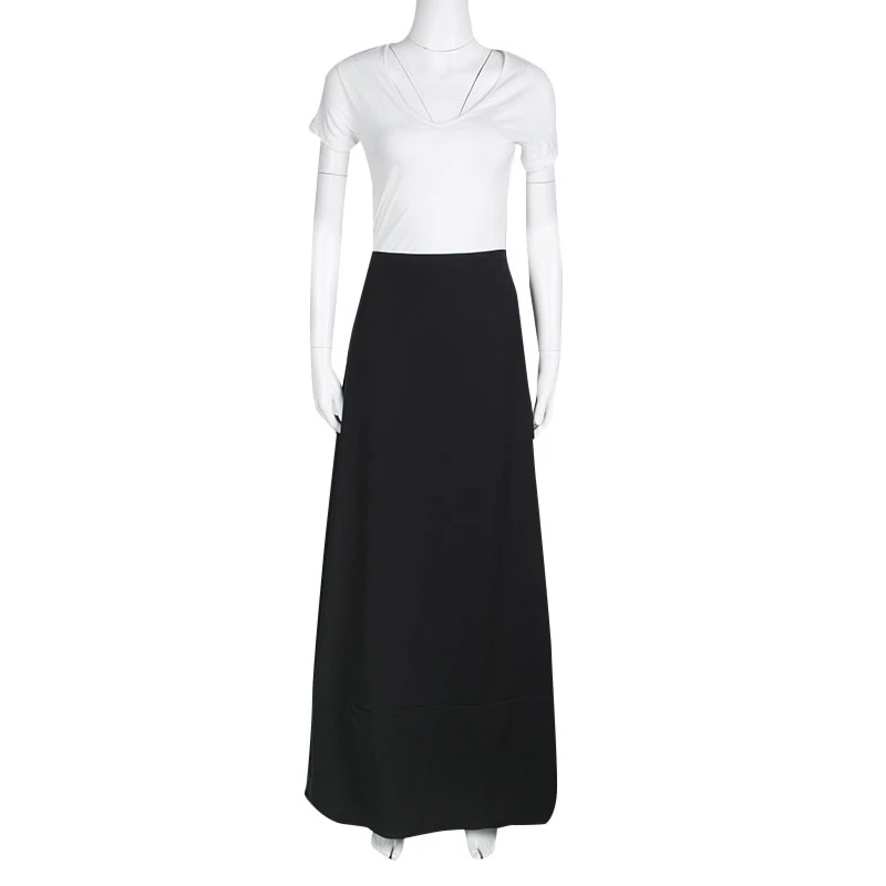 Emporio Armani’s maxi skirt, cut in classic black color, is a power outfit for the perfect formal ensemble. It falls to a flattering floor-sweeping length and owns a structured design. Wear this with a fitted blouse and corset belt to complete the look.