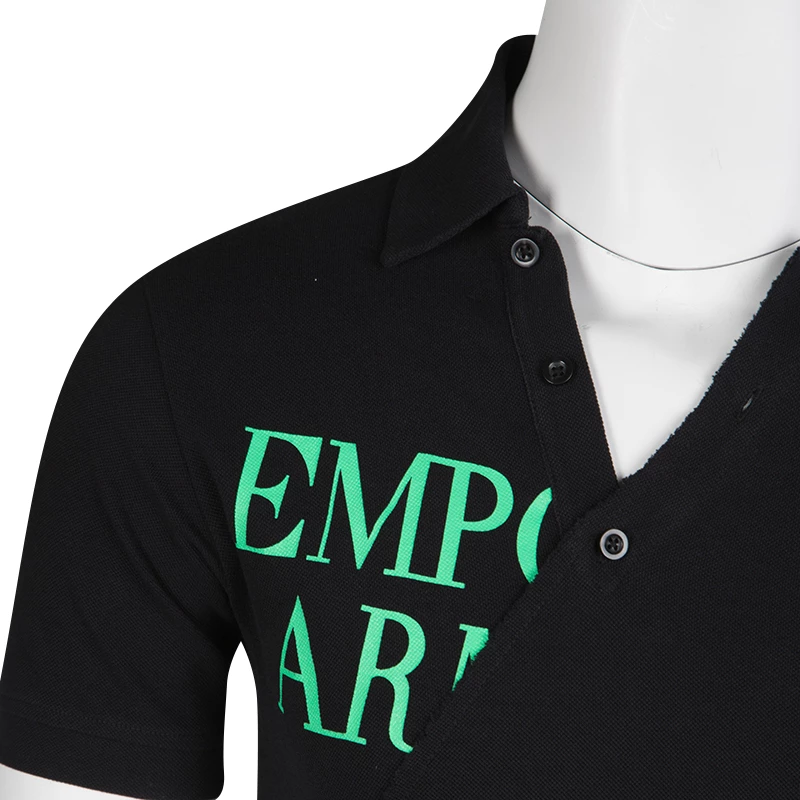 Slip into this polo T-shirt from the house of Emporio Armani and head out in style. The honeycomb knit asymmetric detail T-shirt comes with button closures and a brand print that makes this piece stand out from the rest.