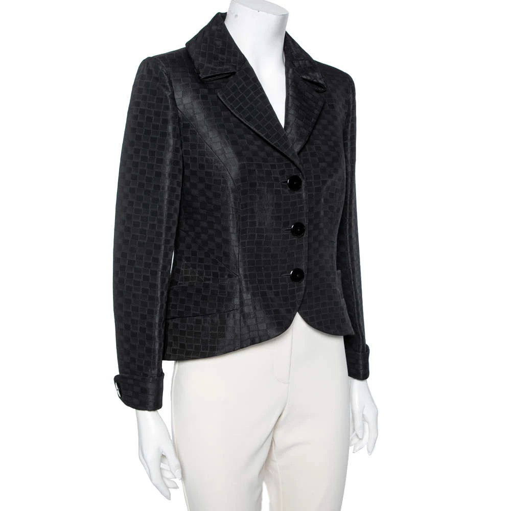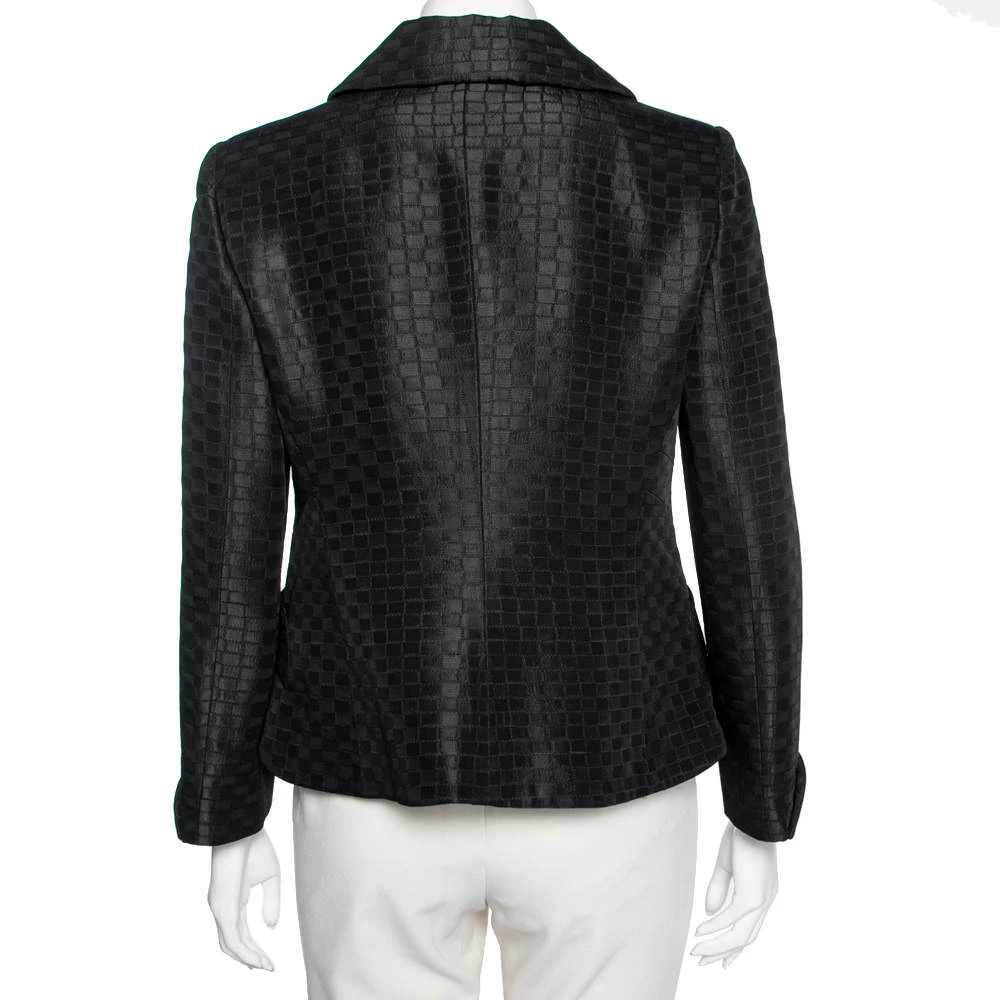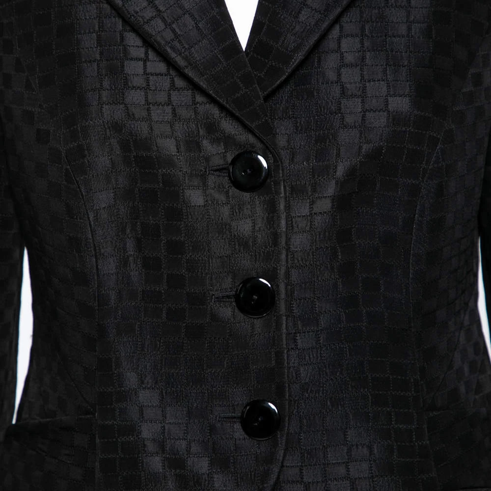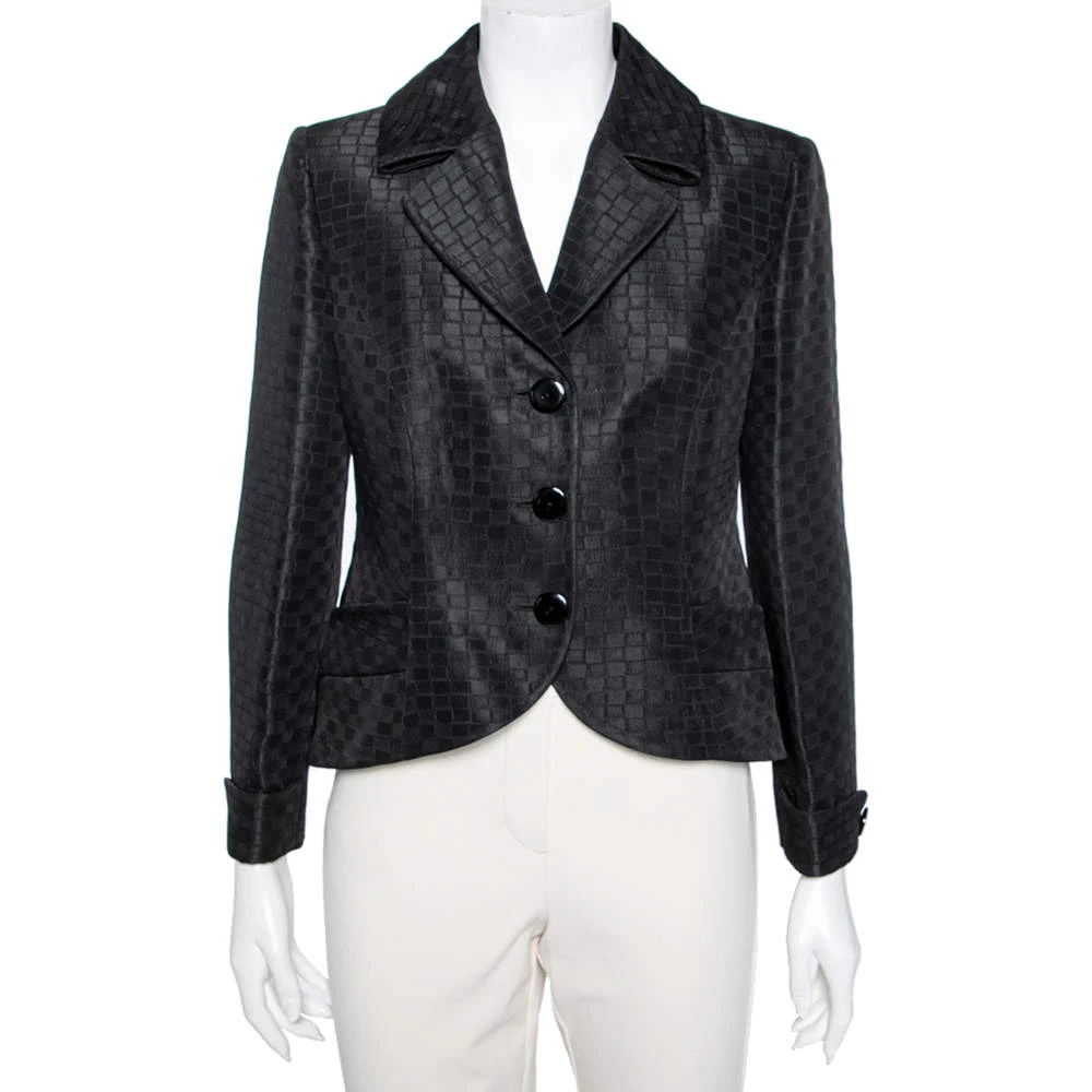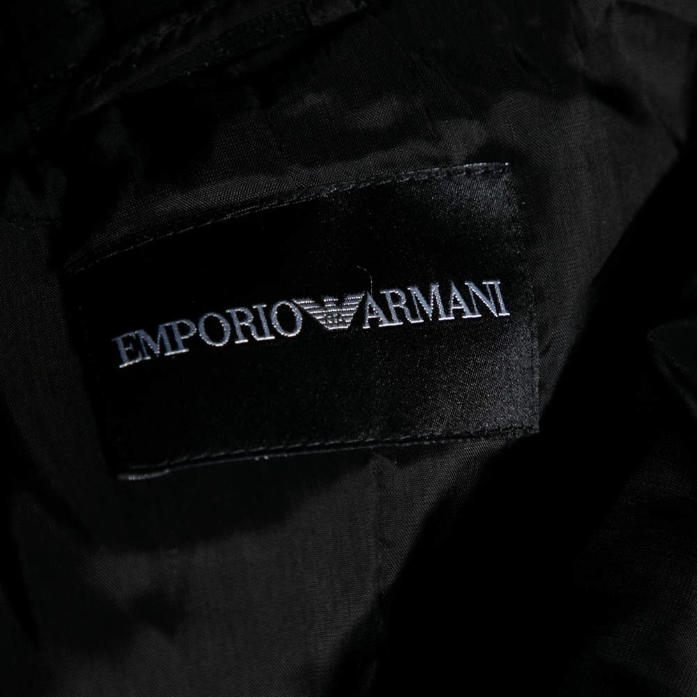Emporio Armani brings to your closet this stunning black blazer that is the perfect formal piece. The single-breasted piece is crafted from fine materials and has front buttons. Stylish pockets finish the structured blazer.