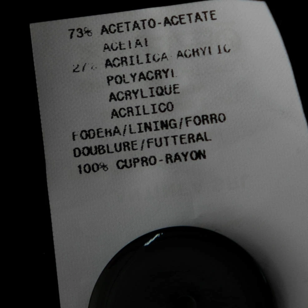 - Composition: Fabric: 73% Acetate , 23% Acrylic ; Lining: 100% Cupro