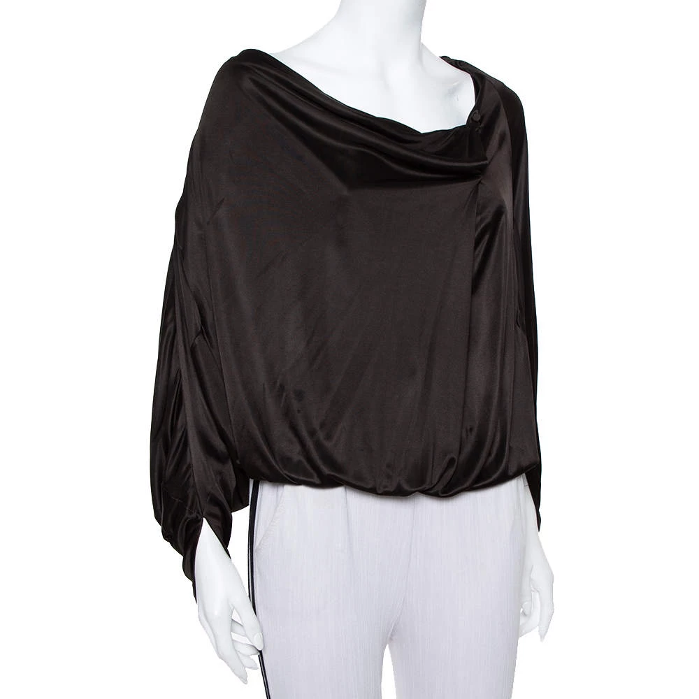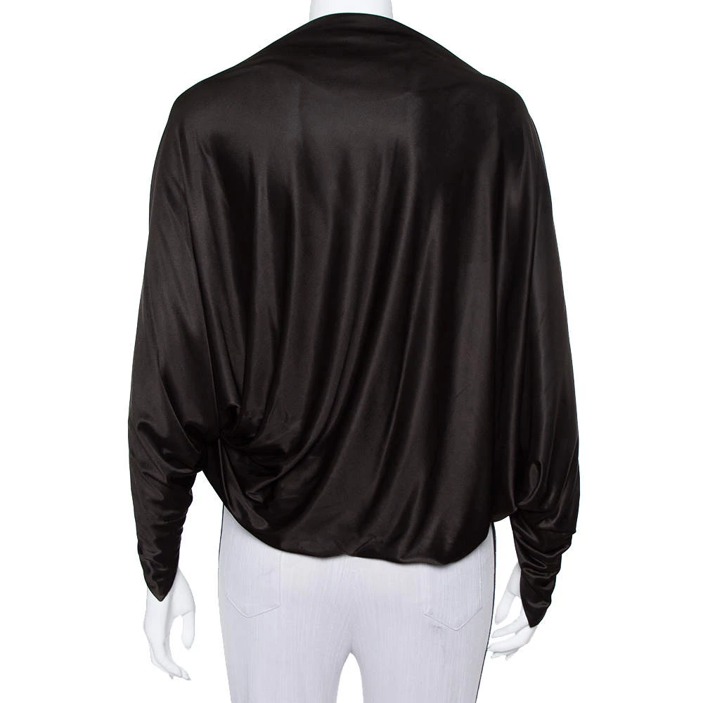 This top by Emporio Armani skillfully merges elegant drapes and folds with a casual, oversized silhouette. The black women’s top has a comfortable fit and a design that will look great with both pants and skirts.
