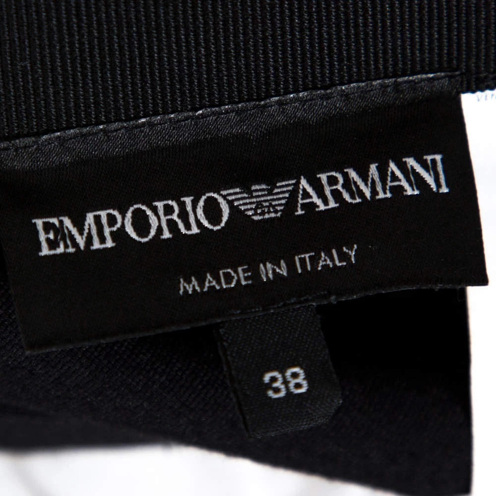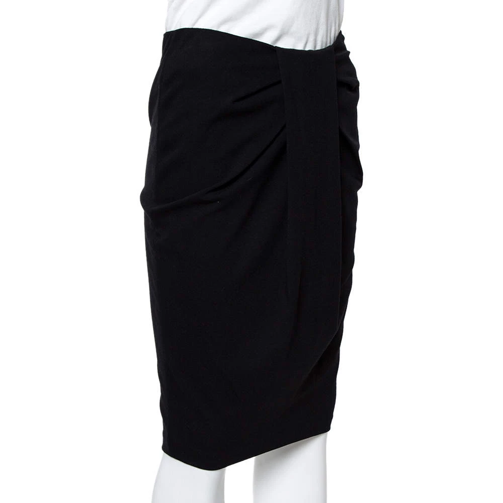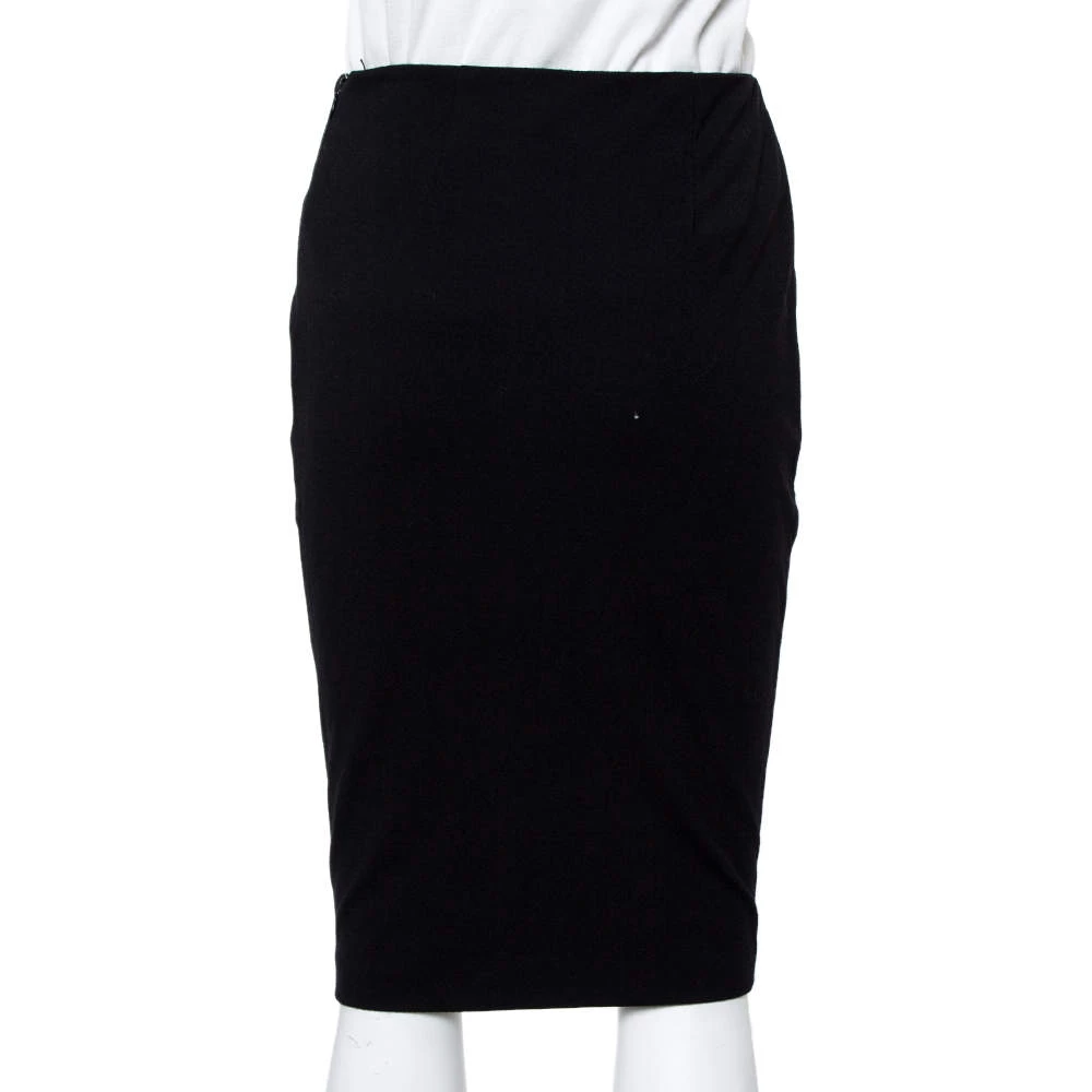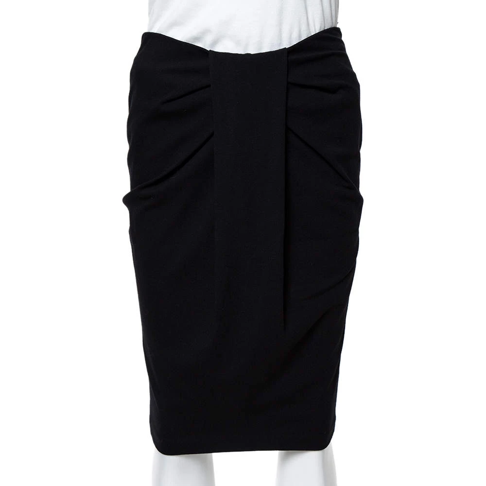 Pencil skirts are wardrobe staples and what better creation to add to your closet than this black one from Emporio Armani! The jersey skirt features a front pleated silhouette and comes equipped with a zip closure. It will look great with a silk blouse and pointed pumps.