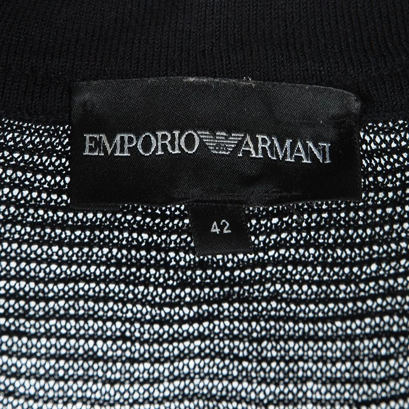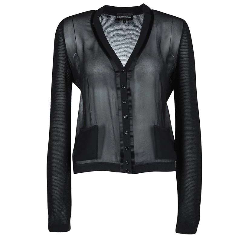 Luxuriously made from a combination of the finest fabrics, this Emporio Armani cardigan is a keeper. It carries a cropped style in a black shade with long sleeves and front buttons. Simple yet stylish, this cardigan will be a fabulous wardrobe addition.
