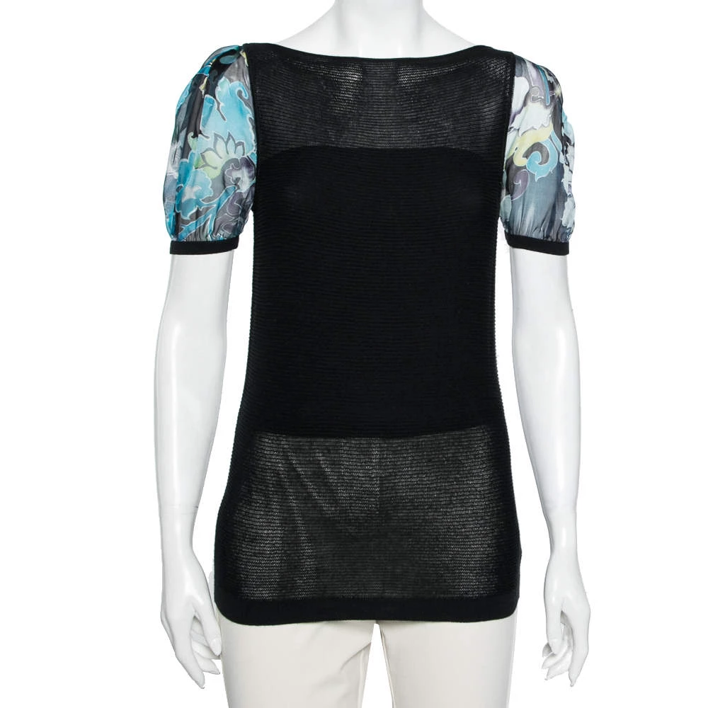 Your style will look appealing and admirable as you wear this lovely top from the House of Emporio Armani! It is stitched using black knit fabric and flaunts colorful puff sleeves. This top will surely be your favorite pick!