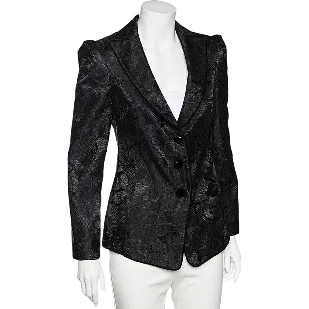 Enrich your formal styles by wearing this classy and stunning blazer from the House of Emporio Armani. It has been tailored using black lace fabric, which adds a touch of finesse to your appearance. It flaunts a button-front feature, butoned cuffs, and two external pockets. Elevate your style by wearing this piece!
