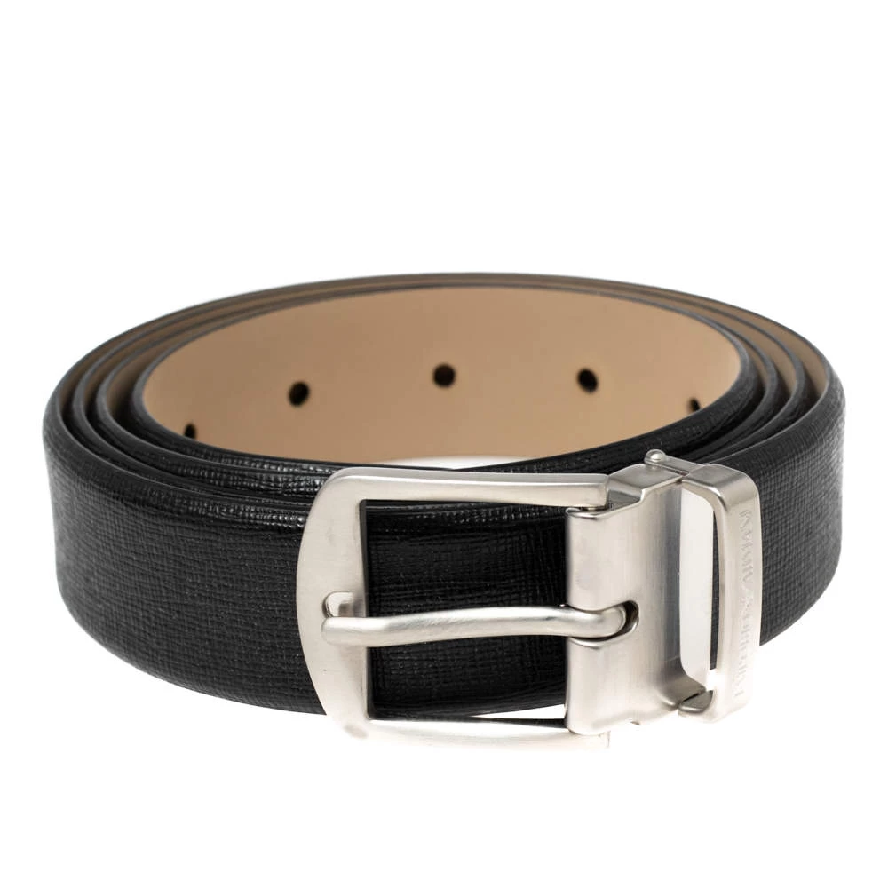 This Emporio Armani belt for men is made of black leather and secured by a shiny silver-tone buckle. It’s designed to be durable and stylish.