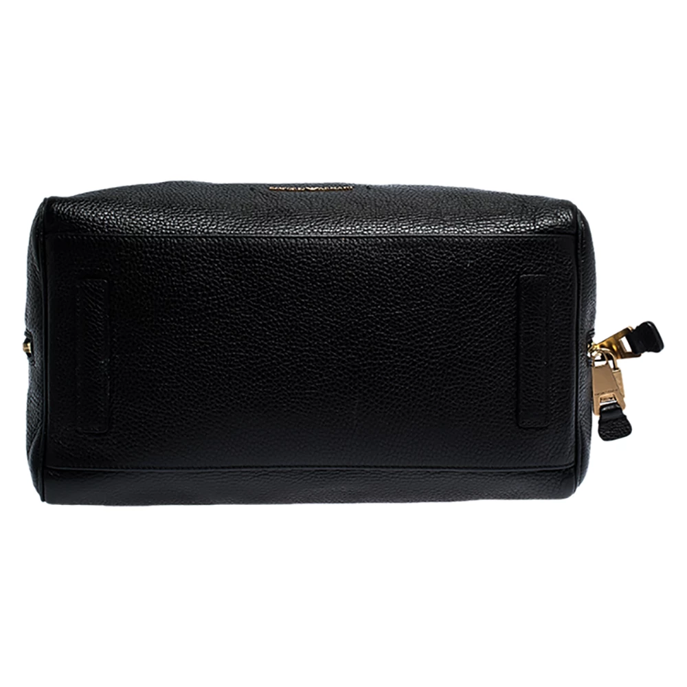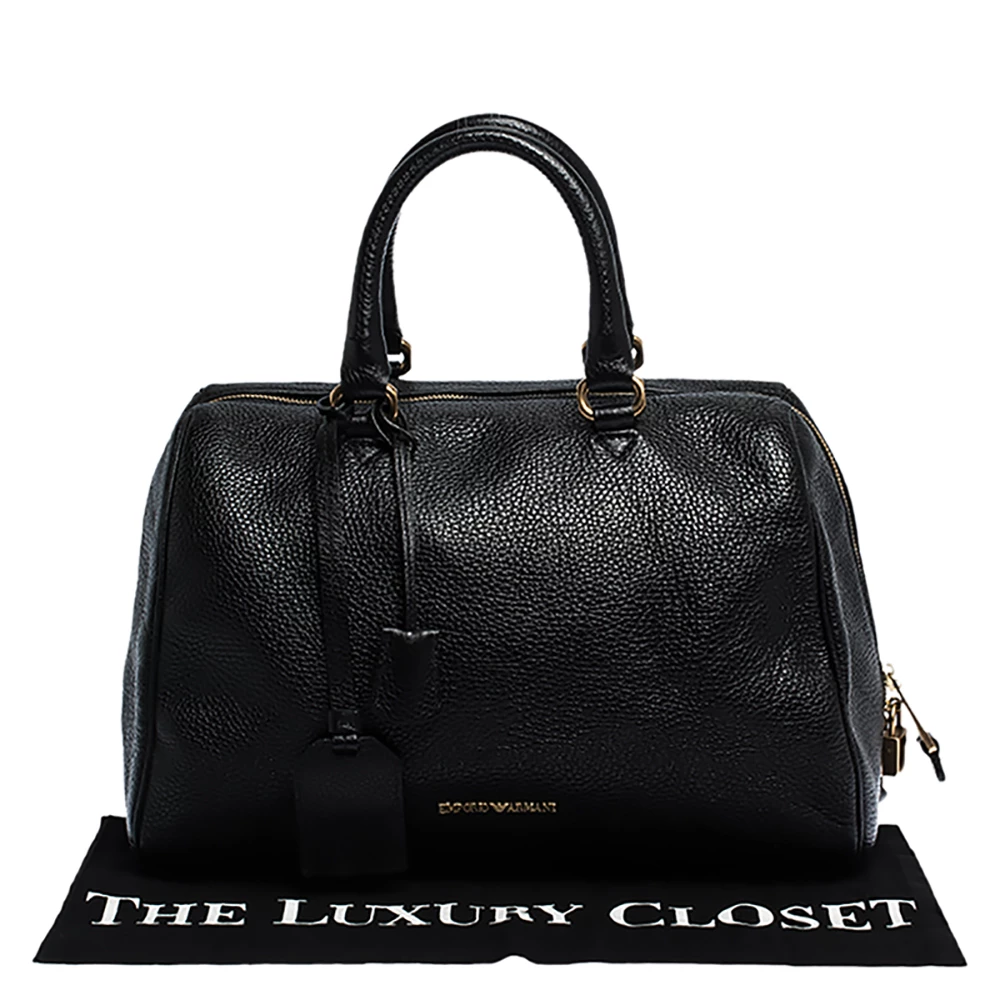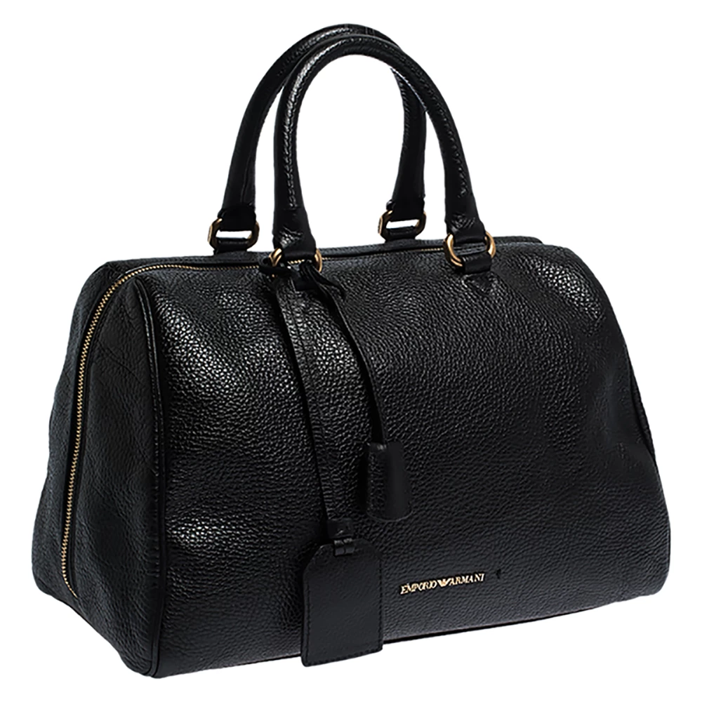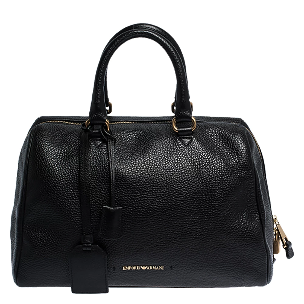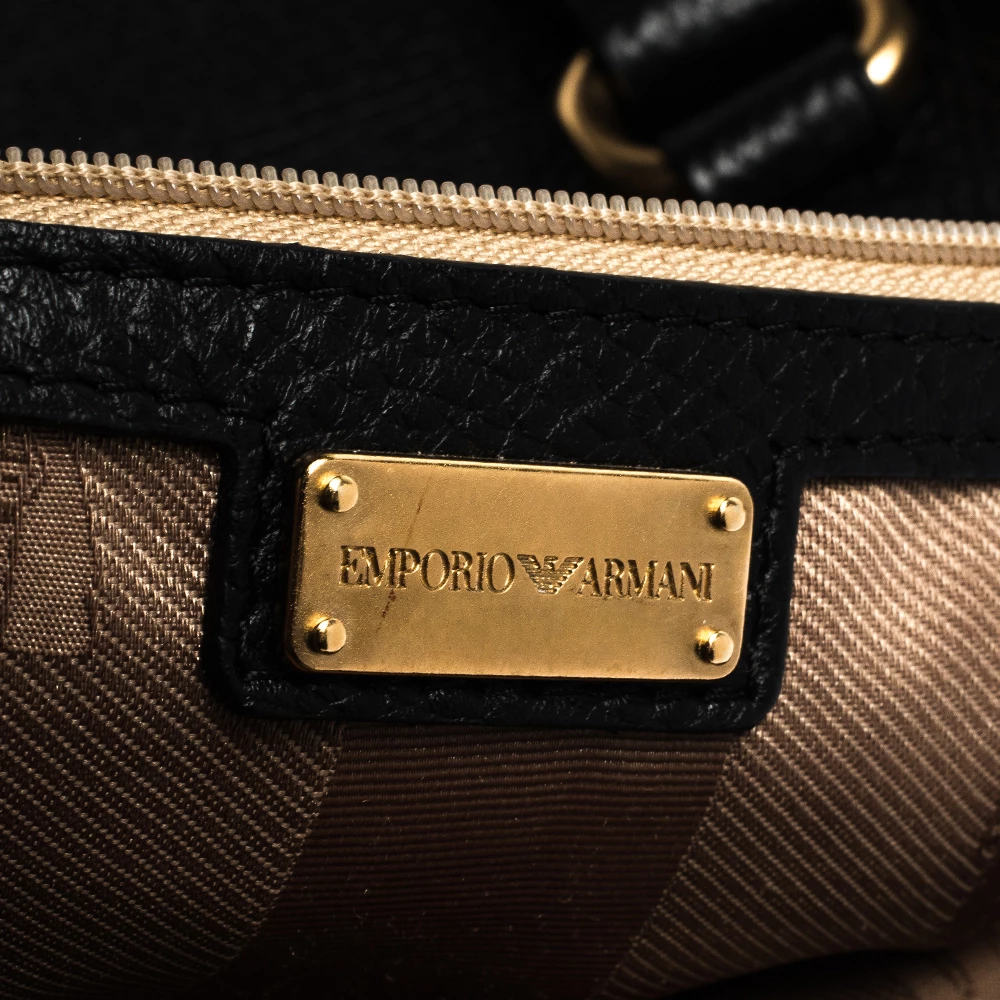 This Emporio Armani handbag is simply unparalleled in its luxurious and stylish design. An impeccable black bag that calls out to the contemporary woman in you. Crafted from leather, it has a dome shape and is styled with a brand tag, logo detail, dual handles, zip closure and a spacious nylon-lined interior. It is finished with gold-tone hardware.