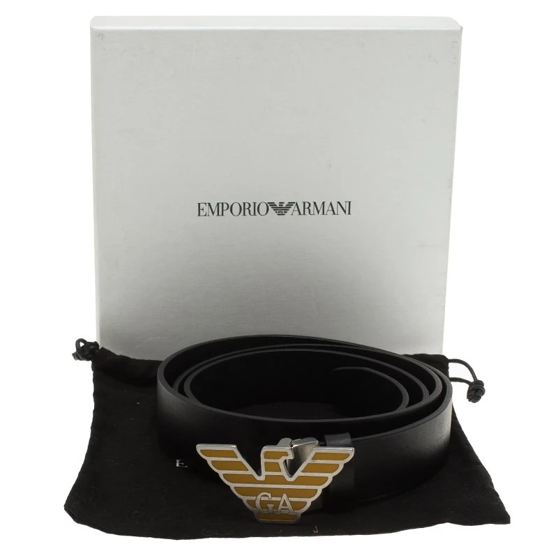 Adorn this One Size belt by Emporio Armani for an elegant style. Crafted in black leather, the belt has silver-tone eagle shaped buckle. It can be worn over denim jeans, shorts or cargo pants to add an extra hint of style to your appearance.