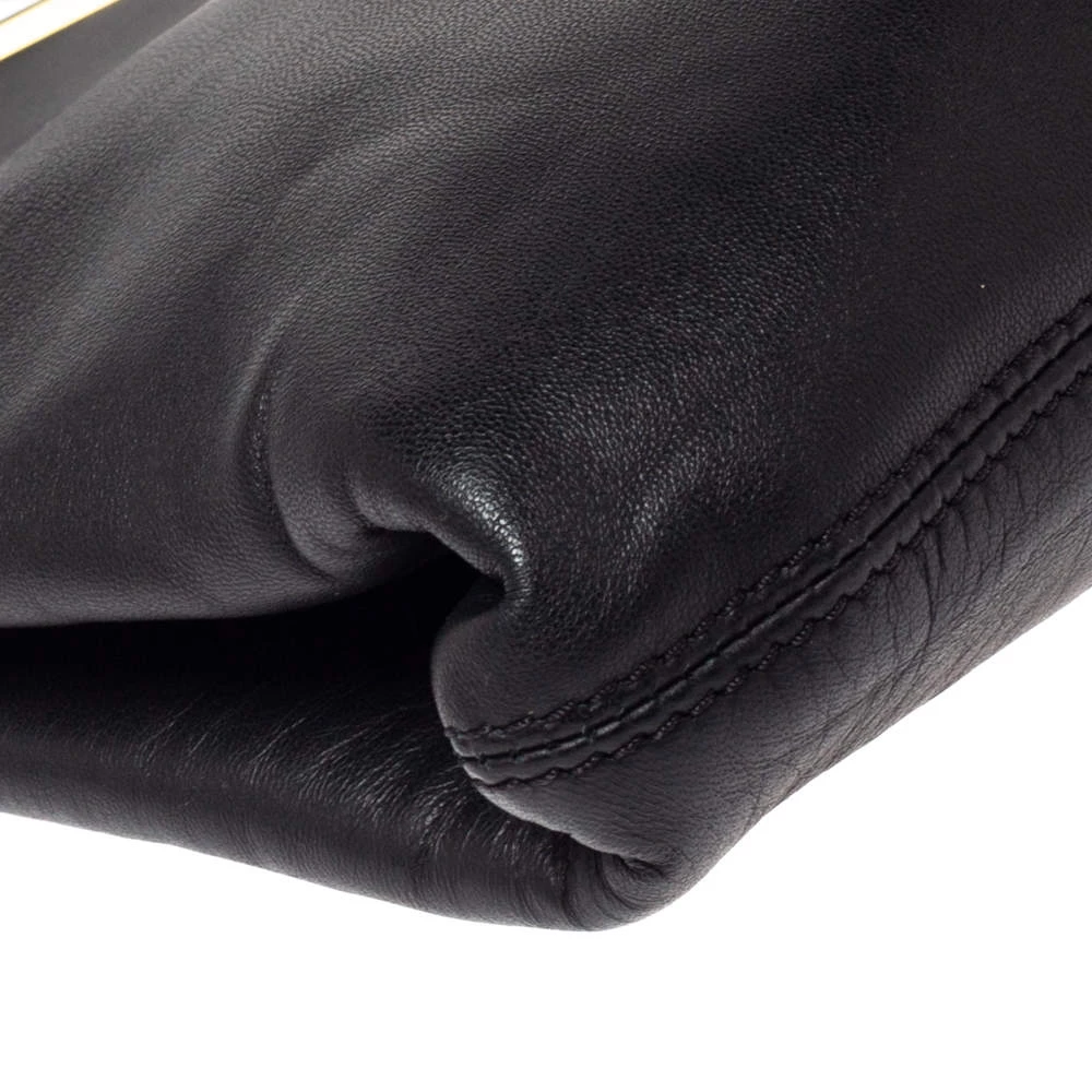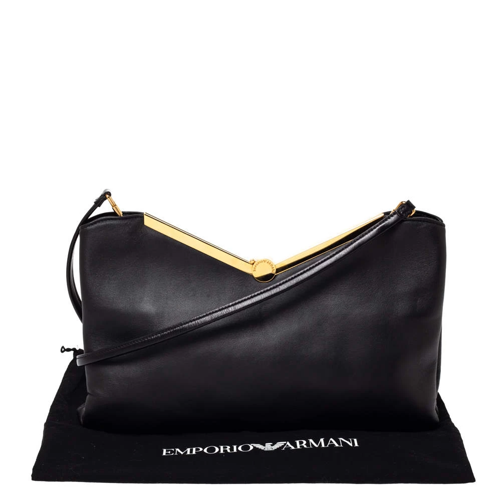 This black Emporio Armani bag is simply well-made and filled with beauty. It has been wonderfully crafted from leather and designed with a distinct frame in gold-tone metal. The spacious bag is lined with suede and held by a top handle and a shoulder strap.