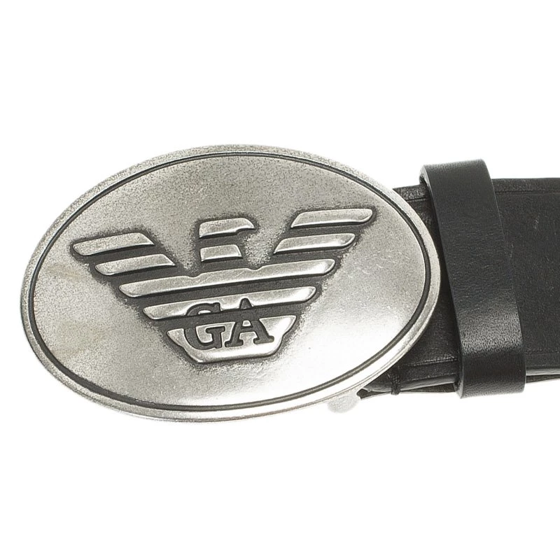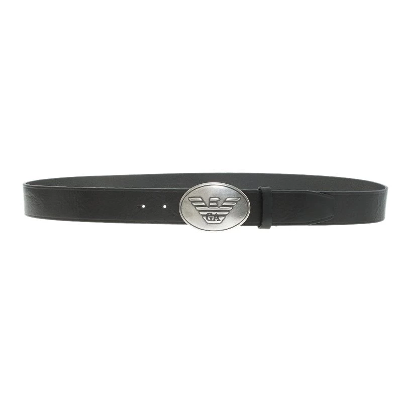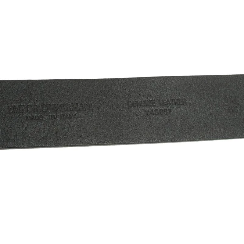 Get this Armani belt and to add oodles of charm to your wardrobe. Crafted from 100 percent genuine leather, the belt is a deep black in color and has a striking silver colored buckle with the brand logo embossed on it.