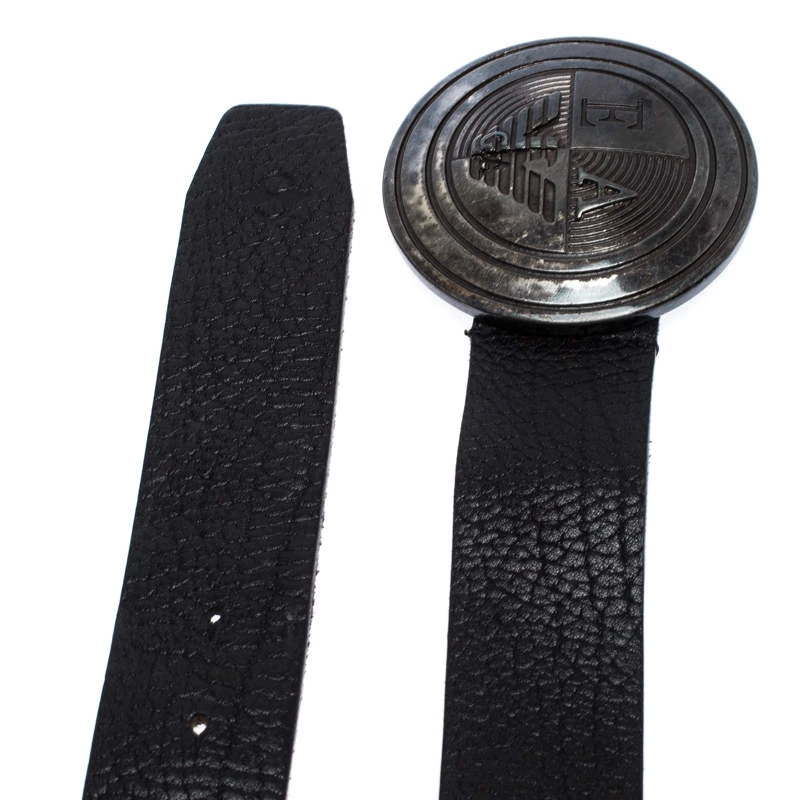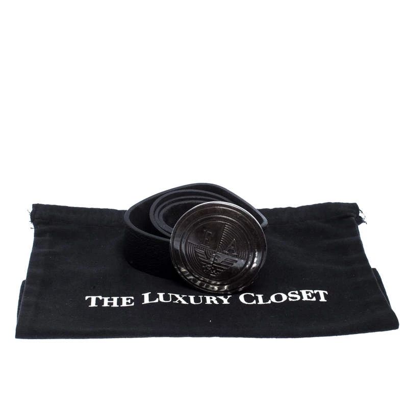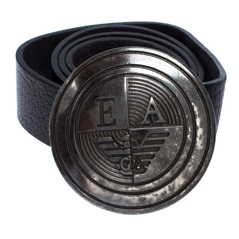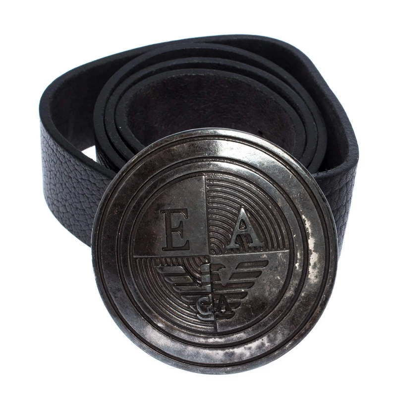 Emporio Armani’s belt has a round logo buckle in black-tone metal. Crafted from durable leather in black, the belt has a sleek design and it will easily add a luxe touch to your ensemble.