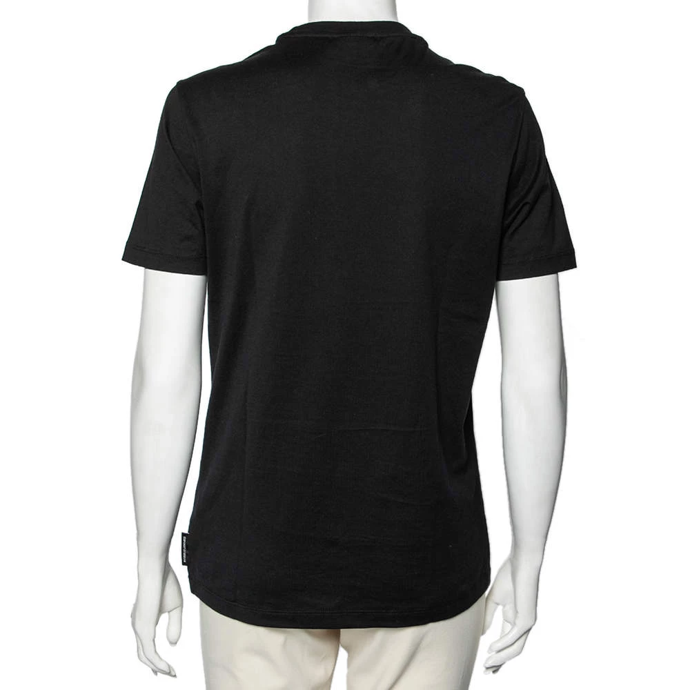 This T-shirt from Emporio Armani will add class and comfort to your casual style. It is designed using black cotton fabric, with a logo print adorning the front. This T-shirt has short sleeves.