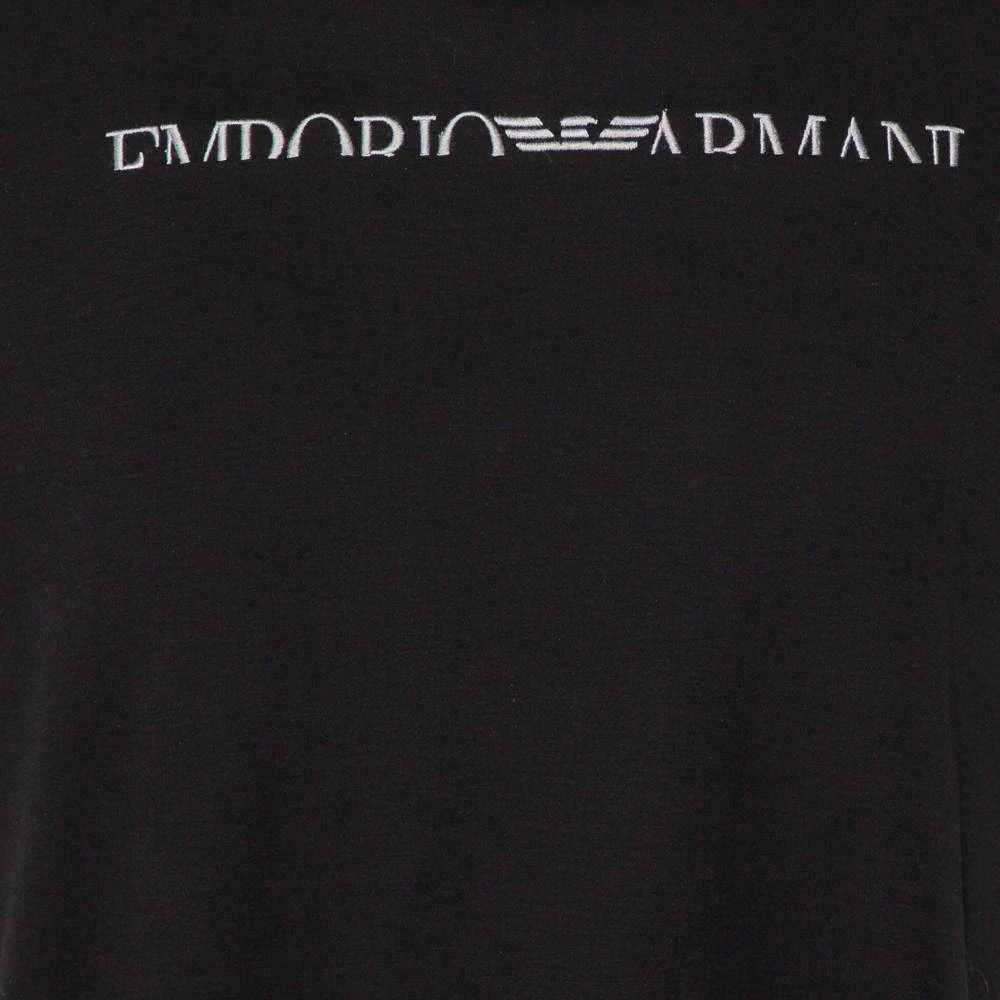 Blending contemporary aesthetics with timeless styles, creations from Emporio Armani are amazingly stylish. This black T-shirt comes made from cotton exhibiting an interesting logo print, a crew neck, and short sleeves. Sure to lend you a fantastic fit, it will look great with distressed denim and sneakers.