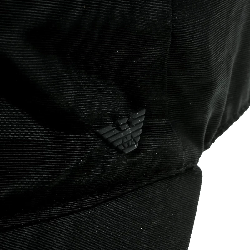 Baseball caps are an ideal style statement with casual outfits. This black Emporio Armani piece is crafted from quality fabrics and features a moire effect. Smart and trendy, this piece will be a great add to your cap collection.