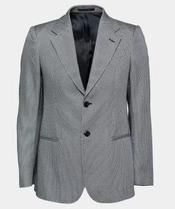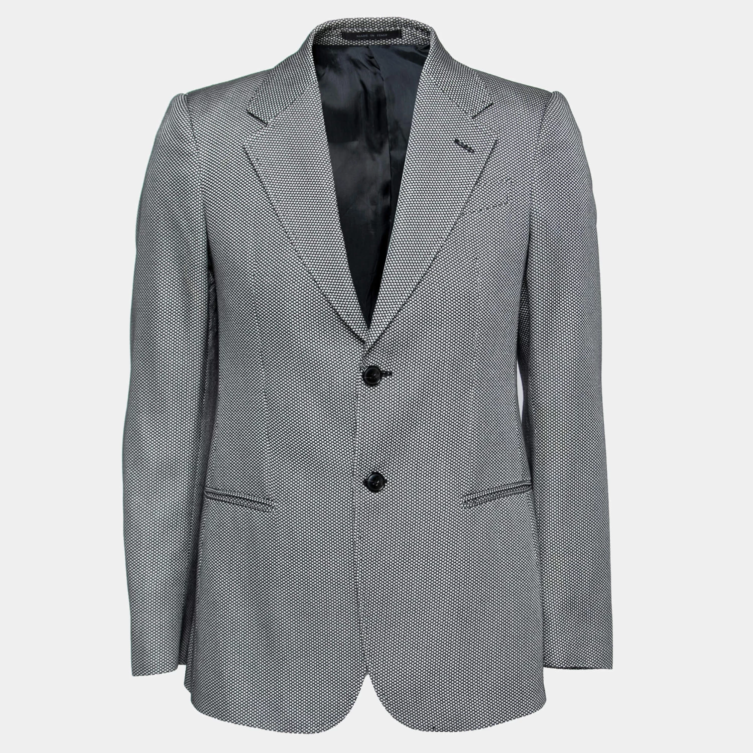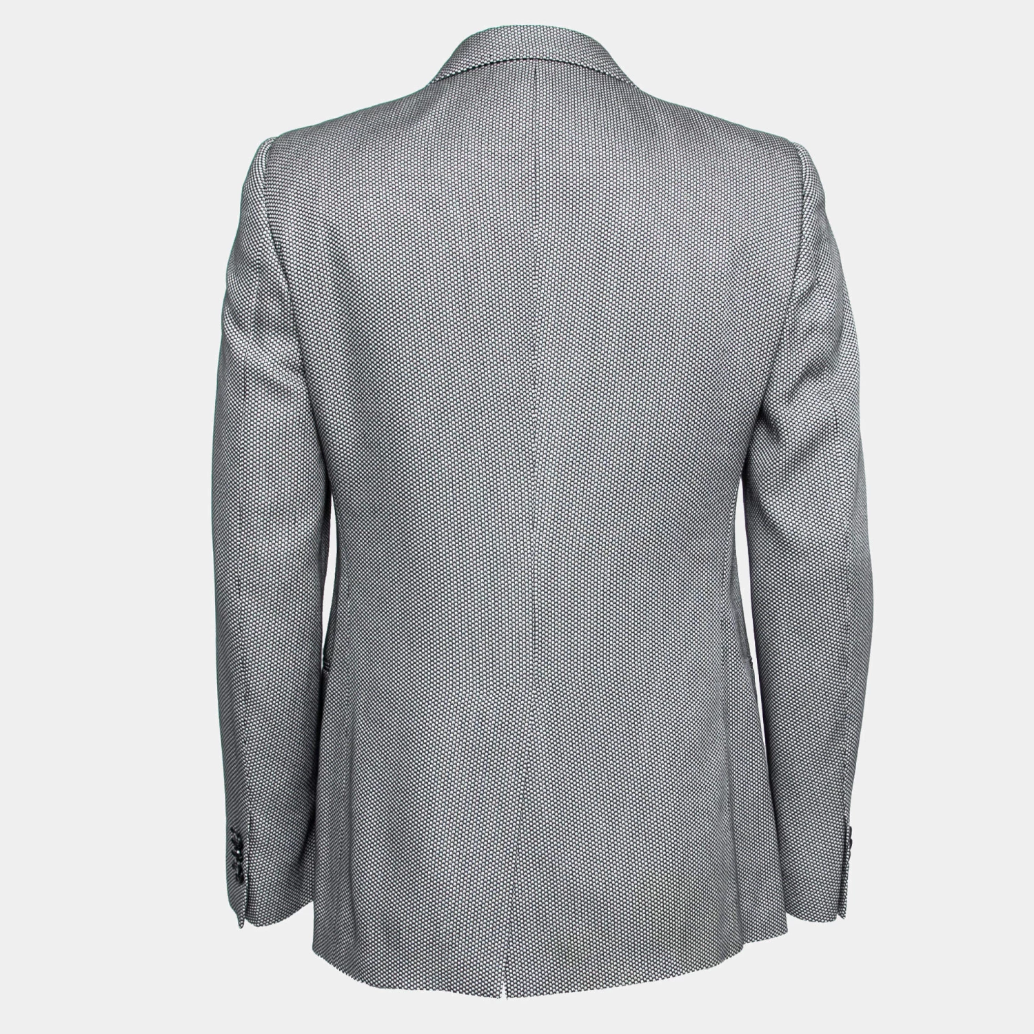 Making an impression at your next formal meeting is easy, thanks to this blazer from Emporio Armani. Fashioned in black monochrome textured crepe fabric, this blazer is finished with buttoned closures, long sleeves, and three functional pockets. Your formal outfit will appear classy with this blazer.