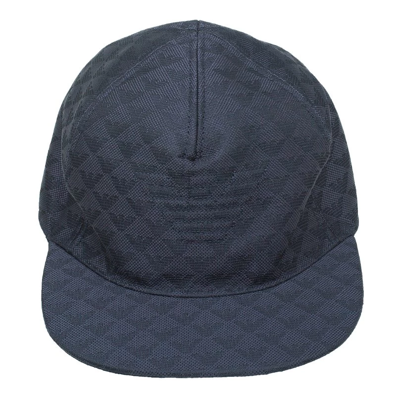 This Emporio Armani baseball cap ensures a dapper look. The black cap is made from a logo-jacquard fabric having black woven Armani eagles.
