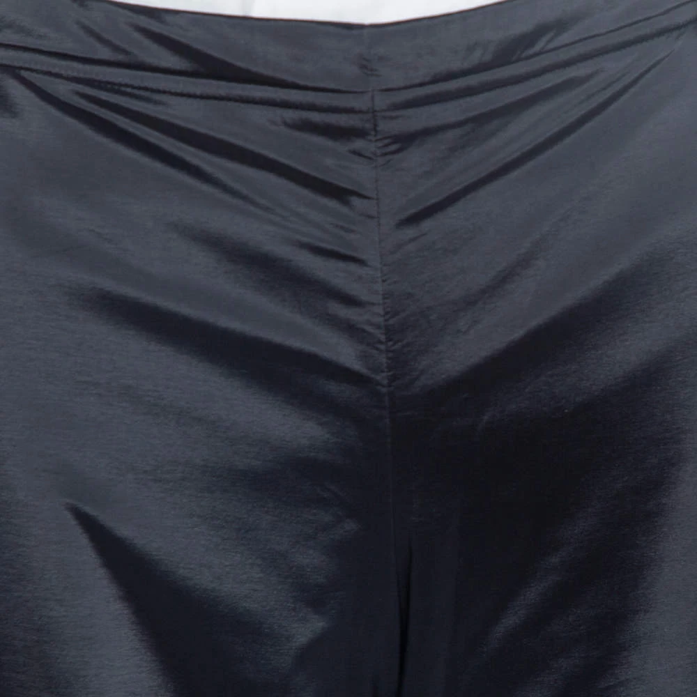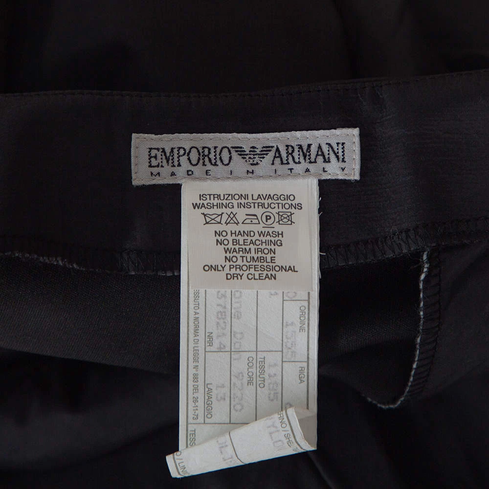 These stylish wide-legged pants hail from the house of Emporio Armani. Crafted from quality material, they come in a classic shade of black. Theya re perfect for casual days and have a padded style. They are secured with a zip closure and have two pockets for convenience.