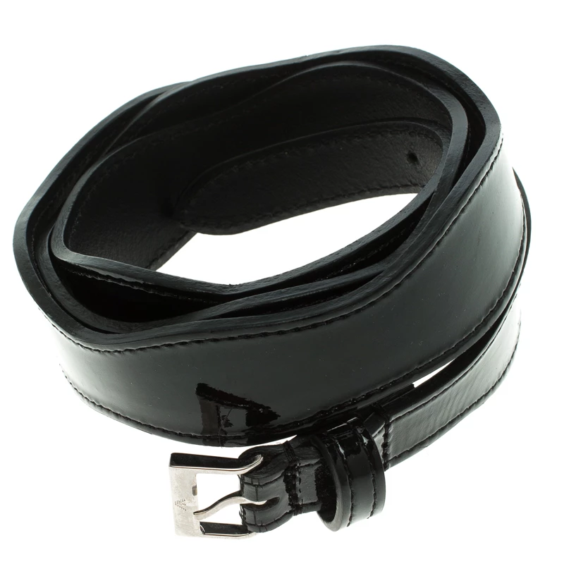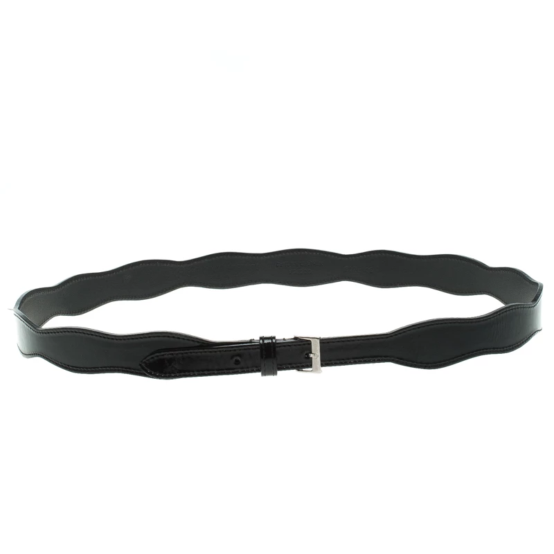 Accessorise with panache using this black Emporio Armani belt. The piece is crafted from leather in a beautiful wavy silhouette and completed with a logo-engraved buckle and a single loop.