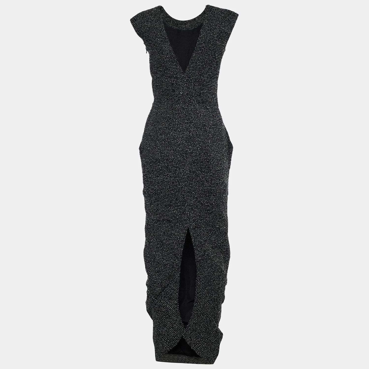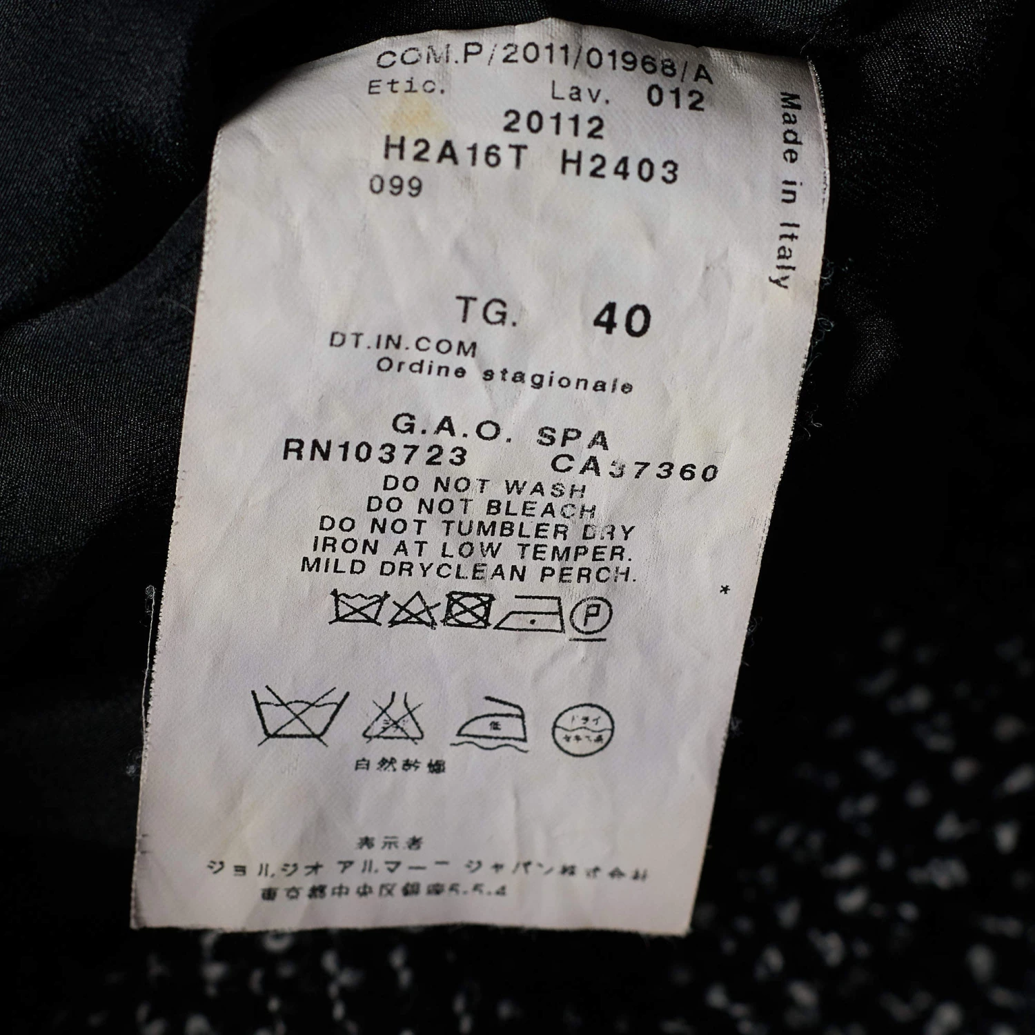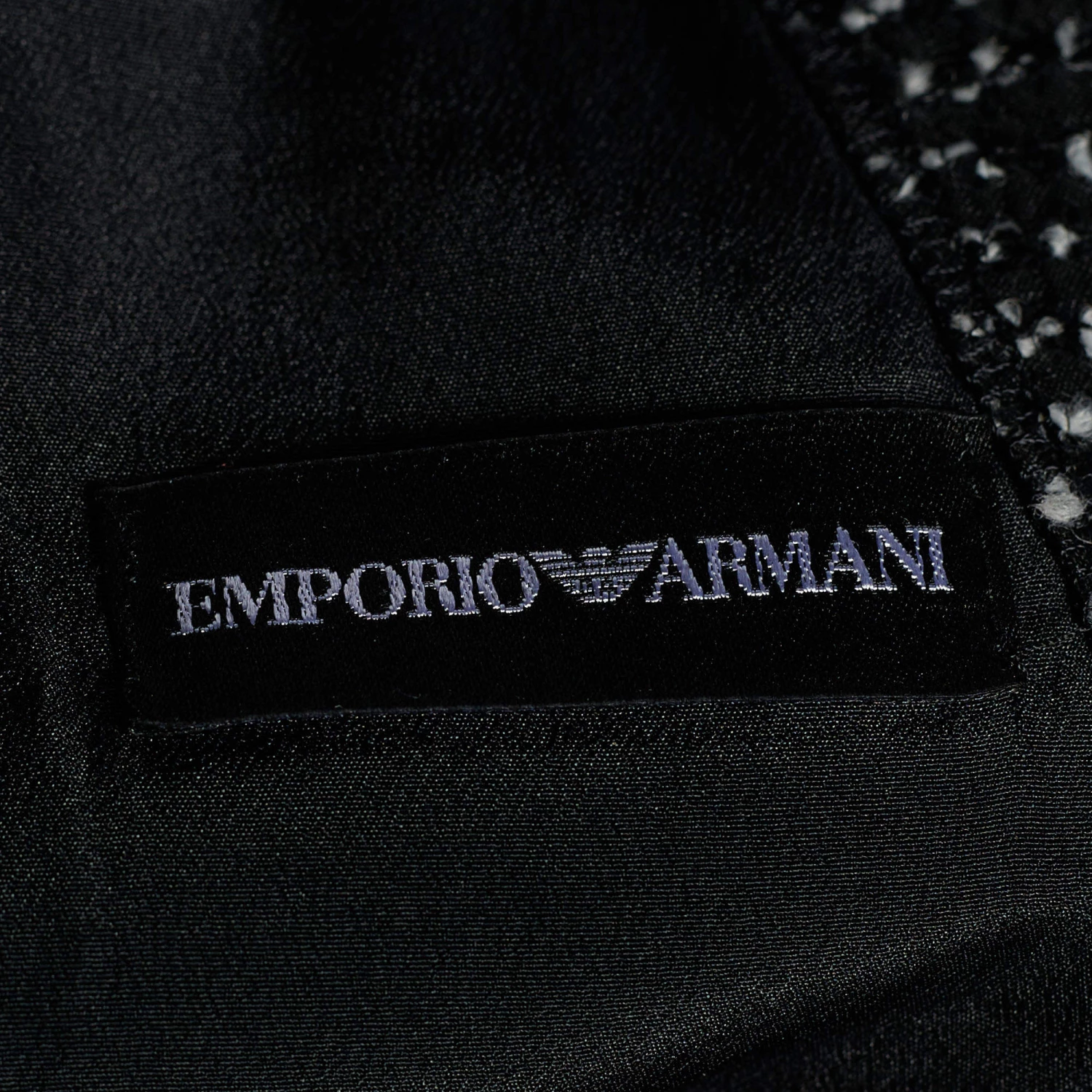Look party-ready and stunning with this dress from the House of Emporio Armani. Made into a maxi-length silhouette, this dress is tailored from black patterned wool and crepe fabric. It is provided with a zipper and two pockets. Make a fashion statement as you wear this Emporio Armani dress.