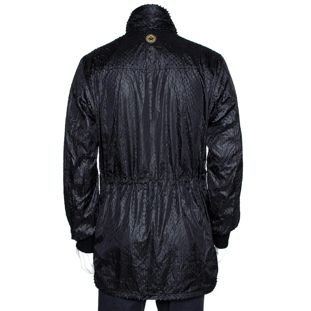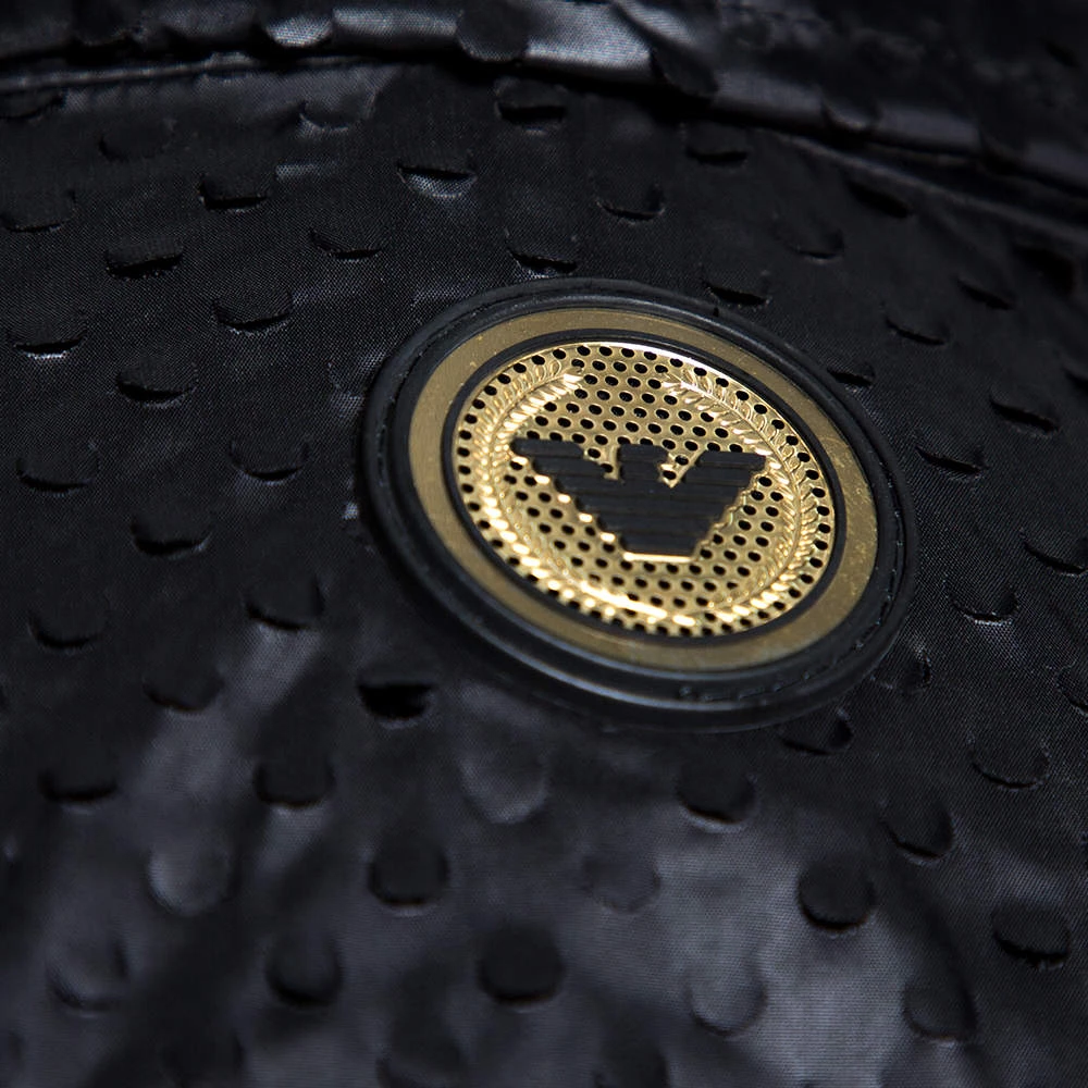 This Emporio Armani jacket showcases class and high-fashion no matter what you pair it with. This black jacket offers unmatched comfort and a relaxed fit. It features a zip closure, long sleeves, pockets, the brand logo and perforated details.