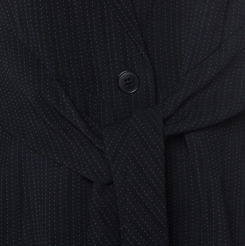 Adorned in a classic black hue and pinstriped pattern, the suit is from Emporio Armani. The fine fit of the blazer is accompanied by waist tie detail and double vents at the rear make it a comfortable piece of clothing. The trousers are equipped with a pocket and a smart length. Team this subtle creation with oxfords for your Monday presentations.