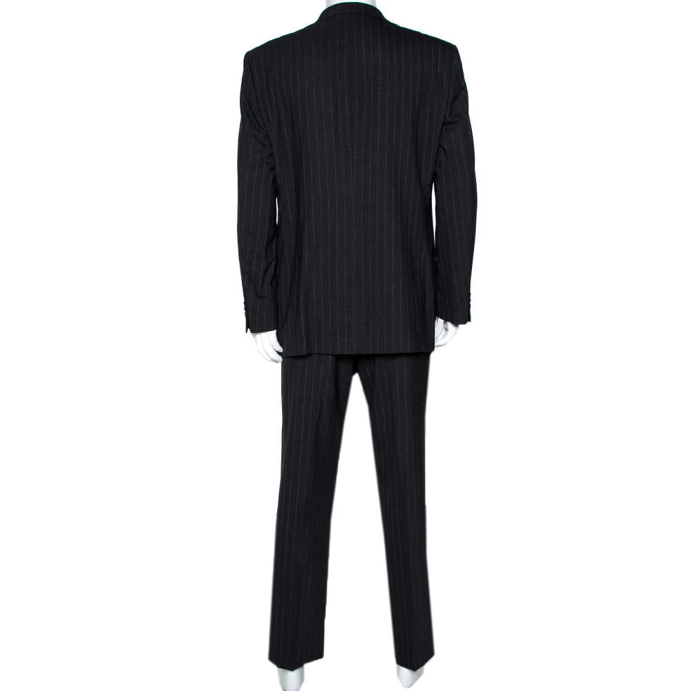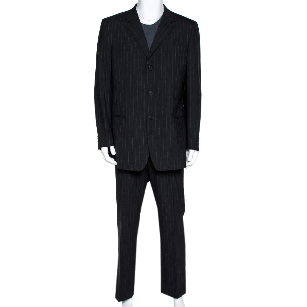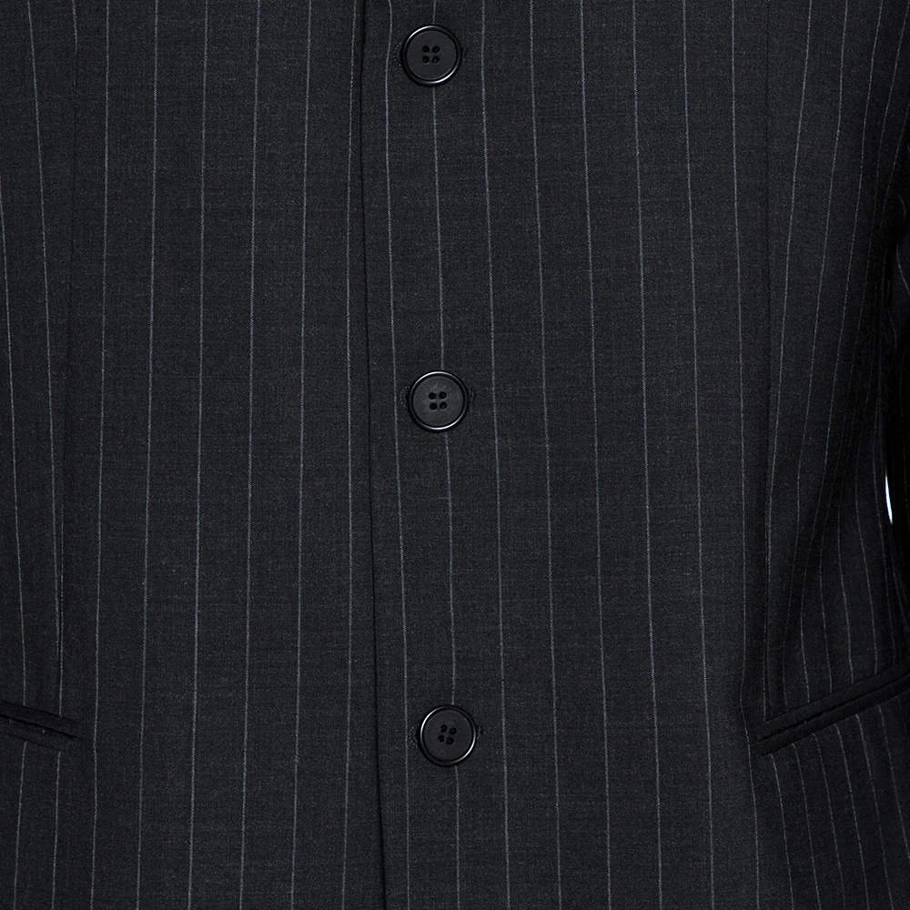 Nail the formal look in a stylish way with this pinstriped suit from Emporio Armani. Finely tailored from a quality fabric blend, the suit carries a subtle black shade all over with a blazer featuring notched lapels and front buttons, while the trousers feature belt loops and straight legs. This suave suit has been made for the modern man and it deserves a place in your closet.