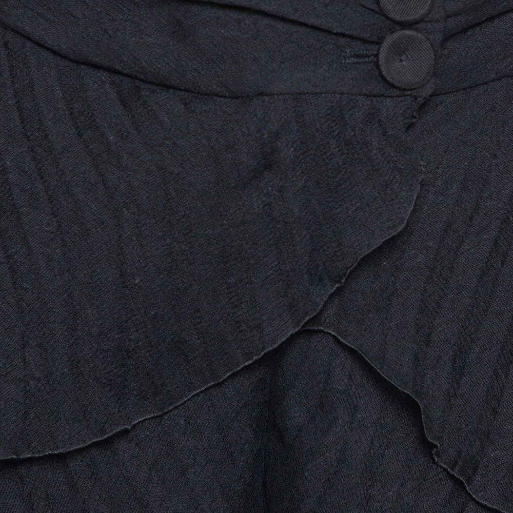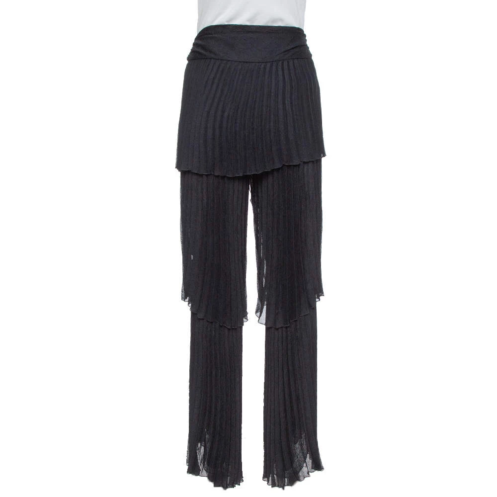 Attain a straight-off-the-runway look with these Emporio Armani pants. Featuring a layered silhouette, these pants are masterfully designed in black plisse with a layered style lending it an illusion of a skirt from the top. Focus only on the pants by styling the pair with a blouse and nude pumps.