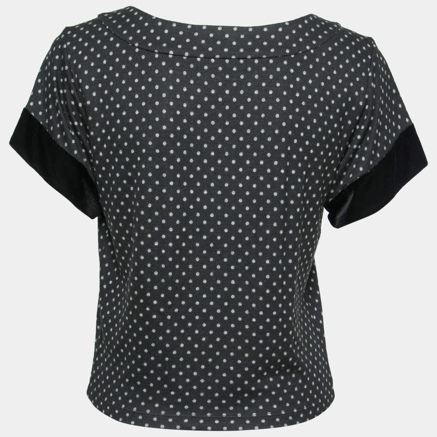 Created from knit fabrics, this Emporio Armani top will make you look effortlessly cool. It features short sleeves, a round neckline, and a perfect fit. The polka dot detailing highlights this black design.