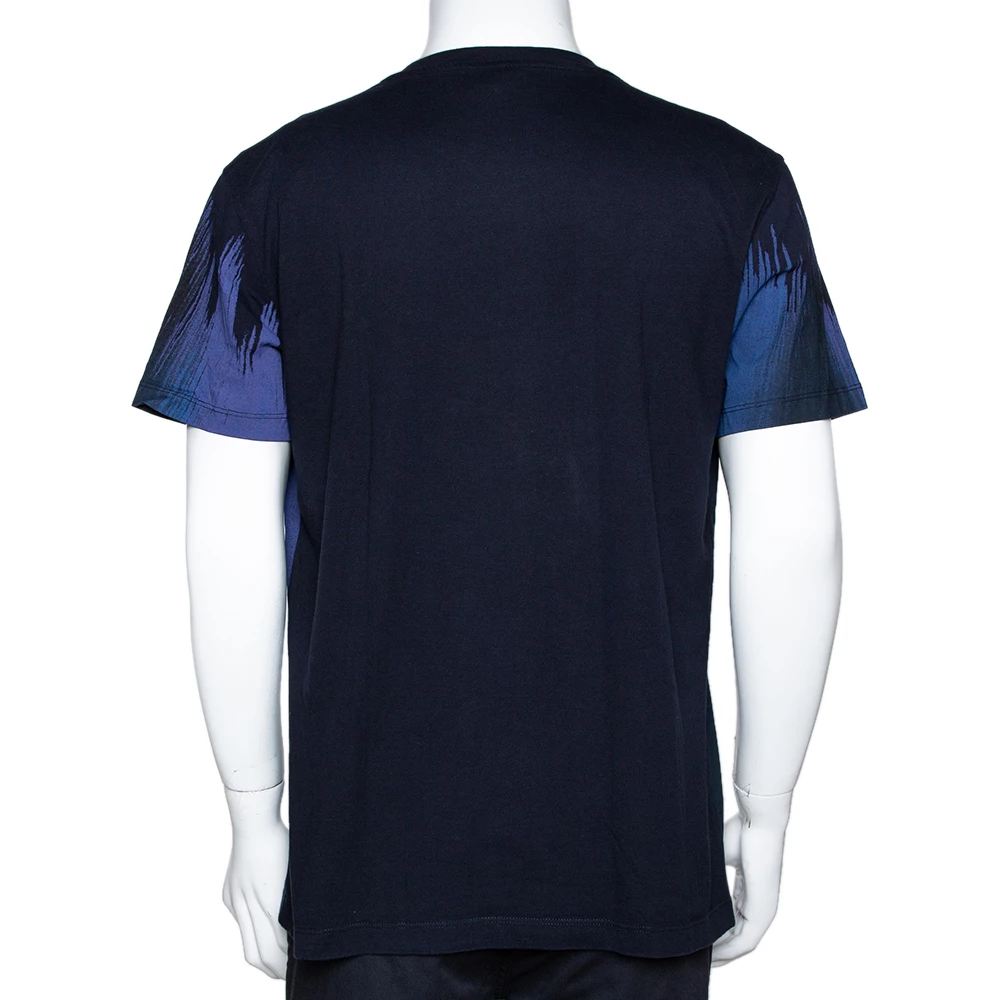 This stylish and casual t-shirt by Emporio Armani is a must-have. It is crafted from pure cotton and comes in a lovely shade of black. It has a print on the exterior and the logo embroidered in the front. The short sleeves and simple neckline make it versatile.