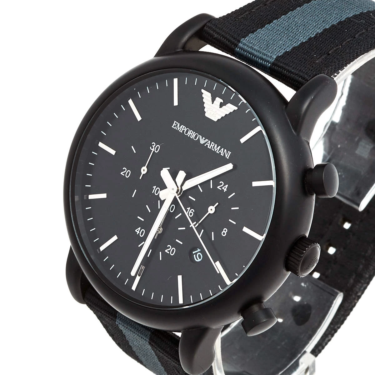 A fine piece of accessory to pair with both your daytime casuals as well as smarter looks, this Emporio Armani wristwatch is a must-have for all with classic taste. An exemplar of the label’s fine artistry, this watch features a black dial set with elegant hour markers, three subdials, and a date window.